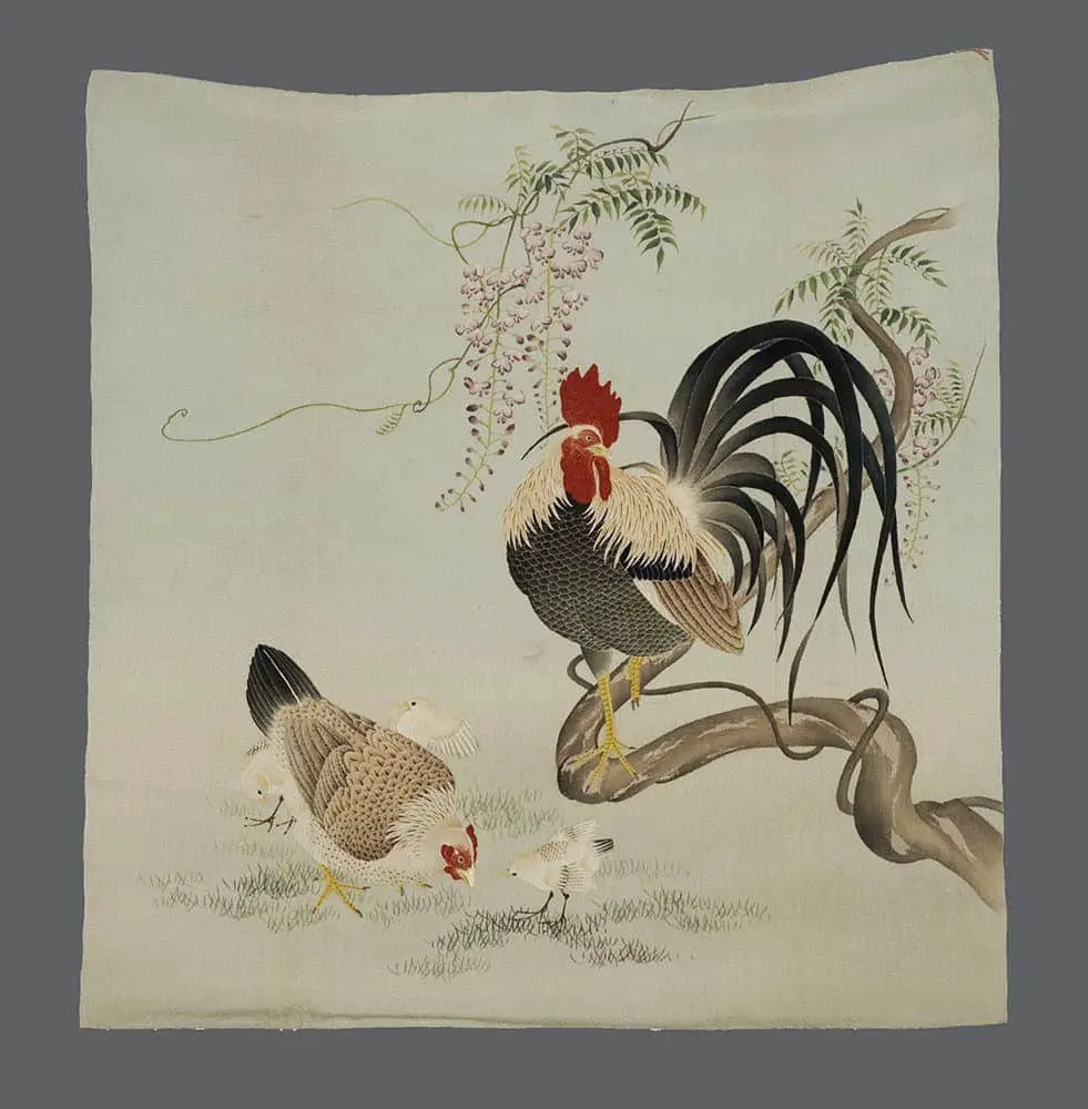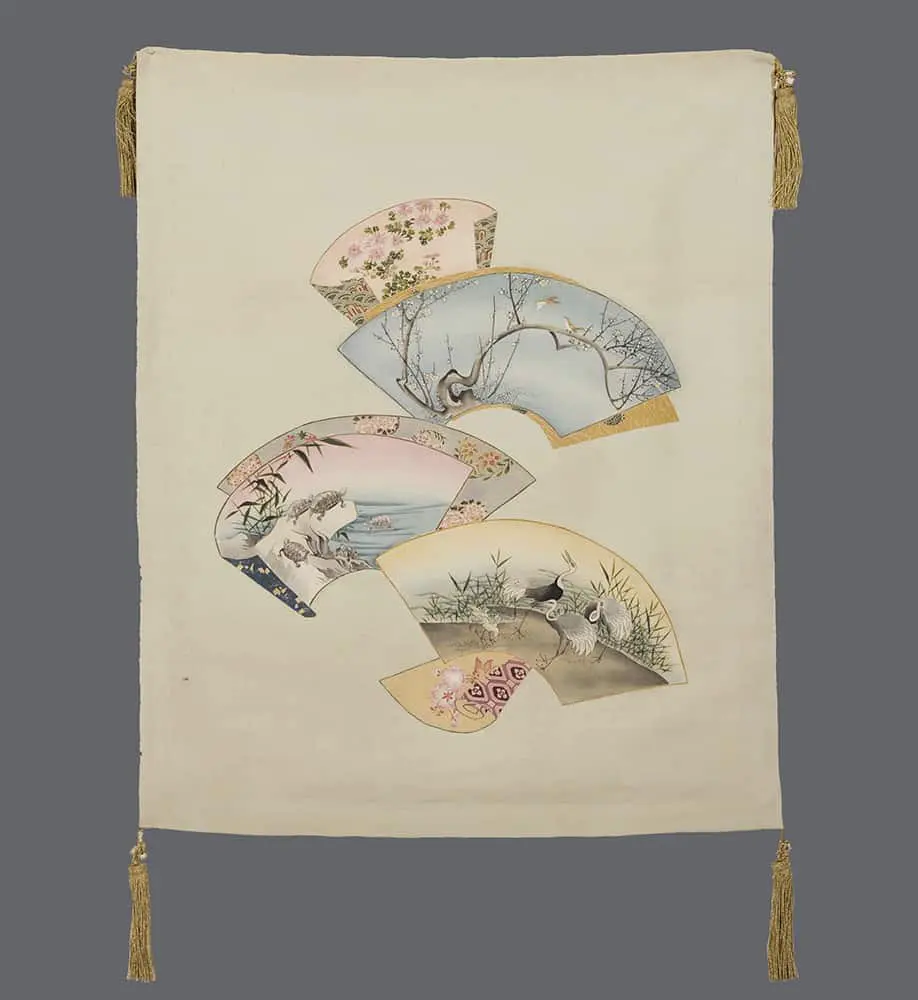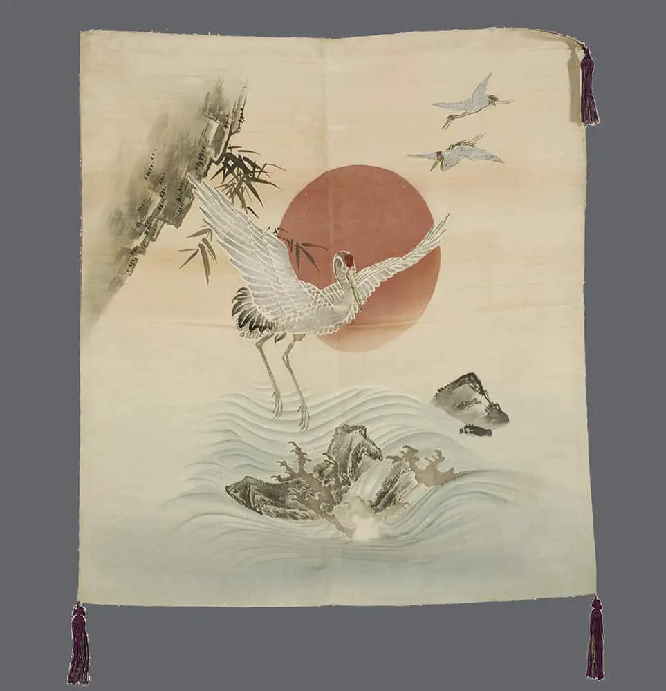 Motifs were not just decorative but culturally rich symbols. Common themes included pine, bamboo, and plum (“Three Friends of Winter”), cranes and tortoises (longevity), cherry blossoms (ephemerality), and fans (celebration). Folklore, poetry, parables, and theater also informed many fukusa designs. Some included humorous puns, parodies, or allusions enjoyed as visual wordplay. This layering of meanings made the fukusa an object of intellectual and aesthetic engagement, a puzzle to be appreciated by both giver and recipient.