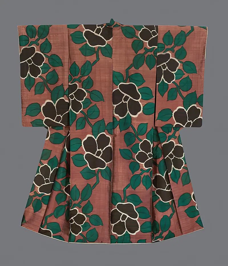 In a 2022 New York Times review of the Metropolitan Museum of Art’s exhibition Kimono Style: The John C. Weber Collection, Will Heinrich described the kimono as “one of the pre-eminent artistic mediums of the 20th century.” This assertion aligns with a growing recognition among scholars and collectors that the kimono—particularly those created during Japan’s early 20th-century modernist period—deserve attention not only as garments but also as canvases for avant-garde artistic expression.