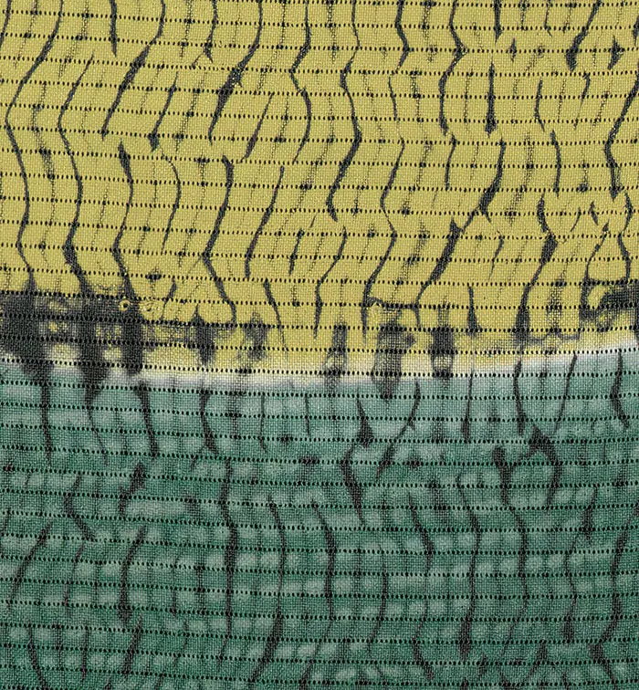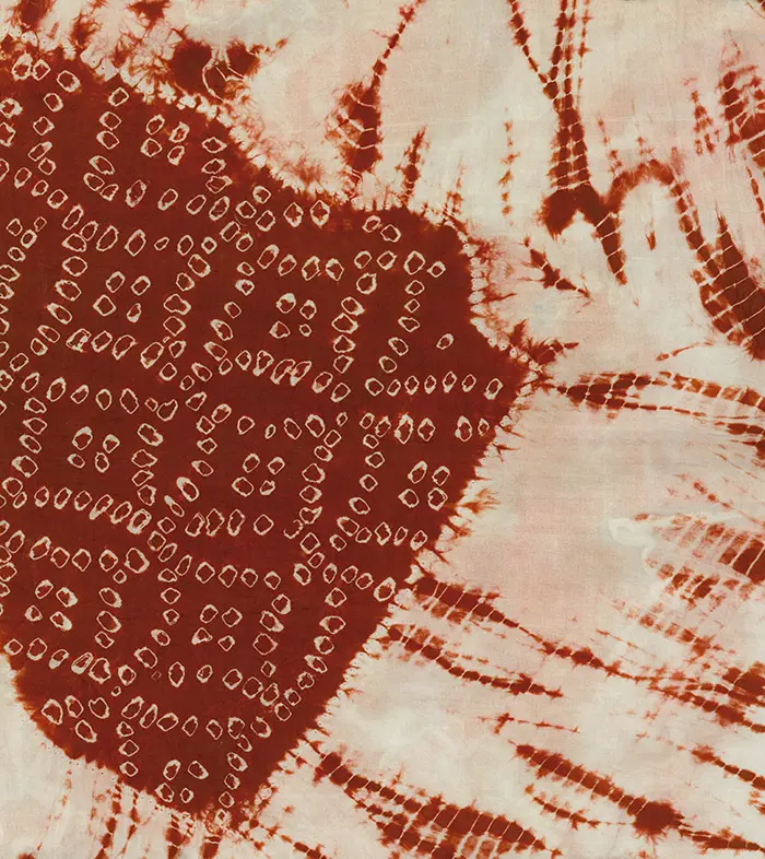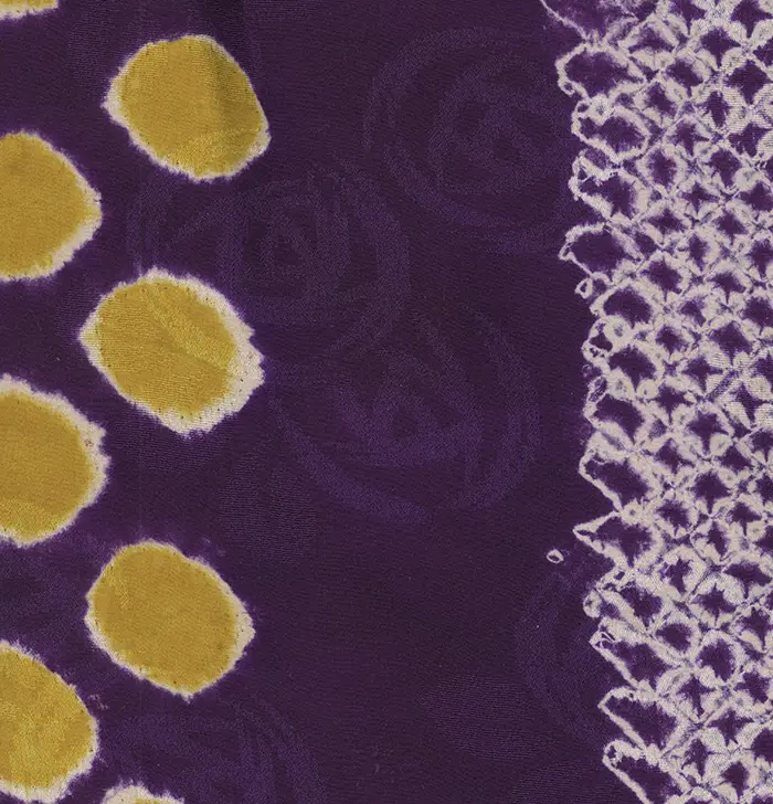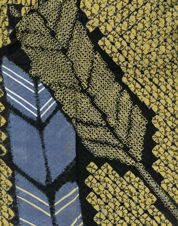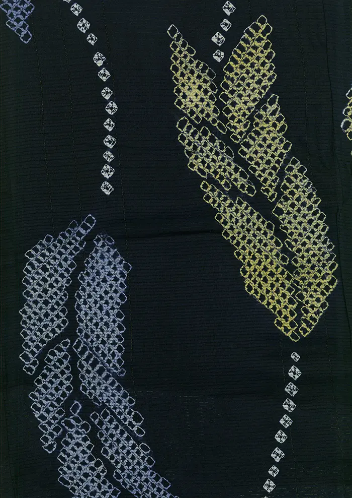 Shibori resist stands out for its characteristic soft or blurry-edged patterns, a stark departure from the precise edges produced by techniques like kata-yuzen (stenciling), yuzen painting and embroidery. Unlike these methods, where the artist exerts control over the materials, shibori involves a more cooperative approach where the dyer works alongside the fabric to unleash its full potential. This symbiotic relationship often results in surprising and unpredictable designs that add an element of spontaneity and creativity to the art form.