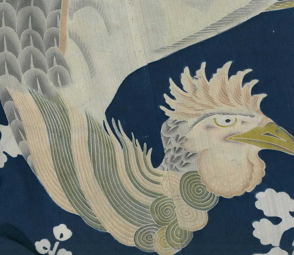 The technique's aesthetic is characterized by bold, flowing lines and simplified forms that work effectively within the constraints of the paste-resist process. Common motifs include natural elements such as flowers, birds, and trees, as well as mythological creatures like dragons and phoenixes. These designs often carried symbolic meaning, with each motif carefully chosen to convey specific wishes or blessings.
