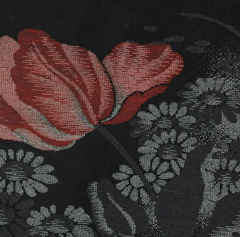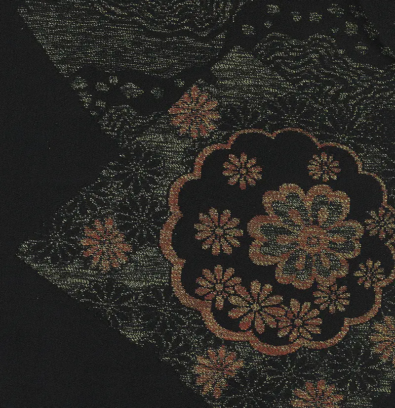 To maximize the dramatic visual impact of urushi threads, skilled designers typically incorporated them into fabrics with deep black silk bases. This strategic color choice created a striking contrast that enhanced the metallic threads' luminous qualities, allowing them to shimmer and dance against the dark background like stars against the night sky. The black silk foundation also emphasized the threads' reflective properties, creating an almost three-dimensional quality that gave the fabric remarkable depth and visual interest.