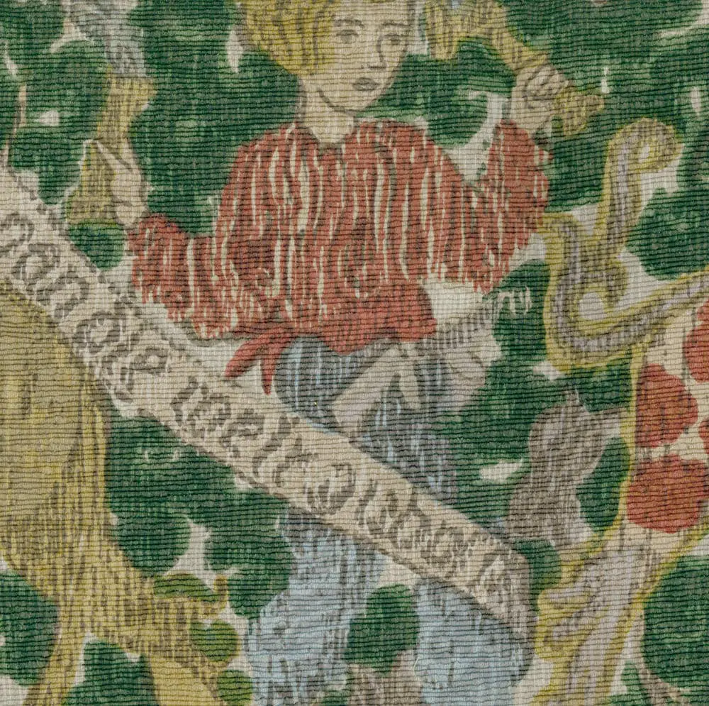 This silk tapestry, crafted as a reproduction in the latter part of the 19th century, features linen backing and metallic-thread borders. It's in excellent condition, measuring 67 inches by 37 inches (170 cm x 94 cm).