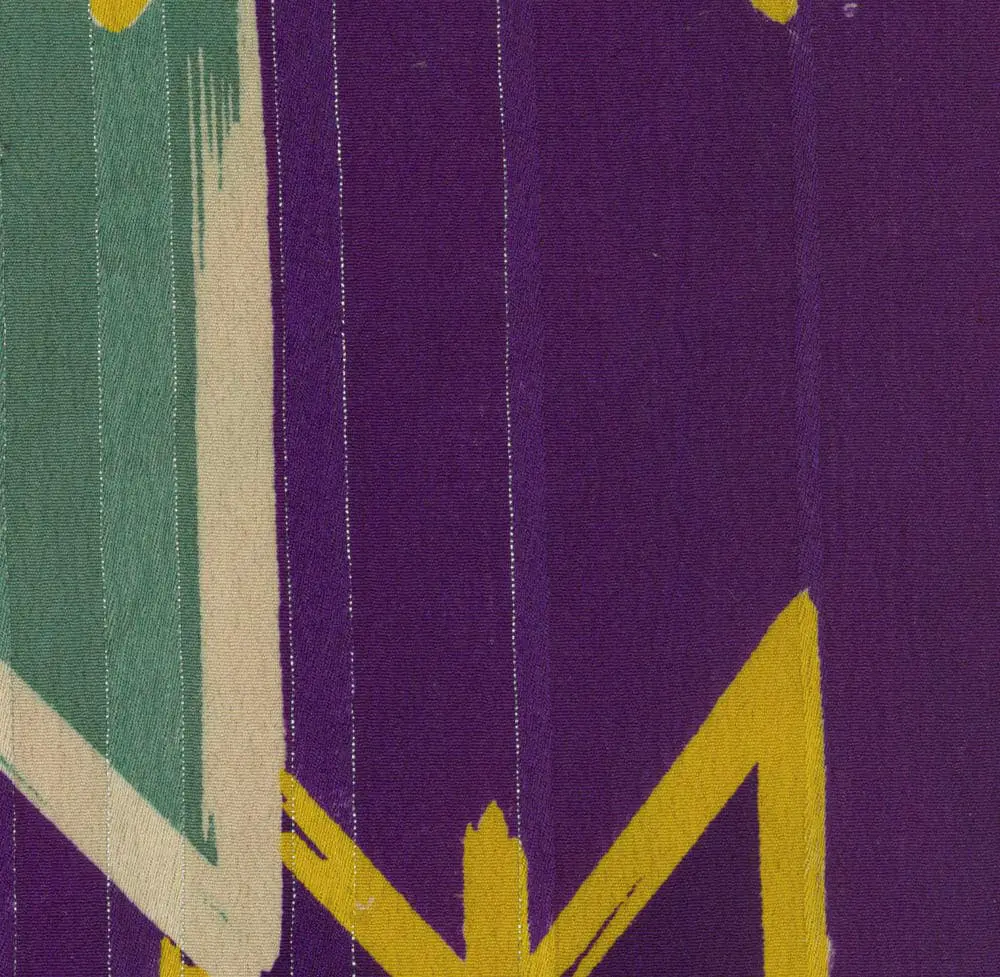 This artwork is featured on page 271 of Art Kimono: Aesthetic Revelations of Japan, 1905-1960. This book, published by Yorke Antique Textiles, can be previewed or purchased on our website here.