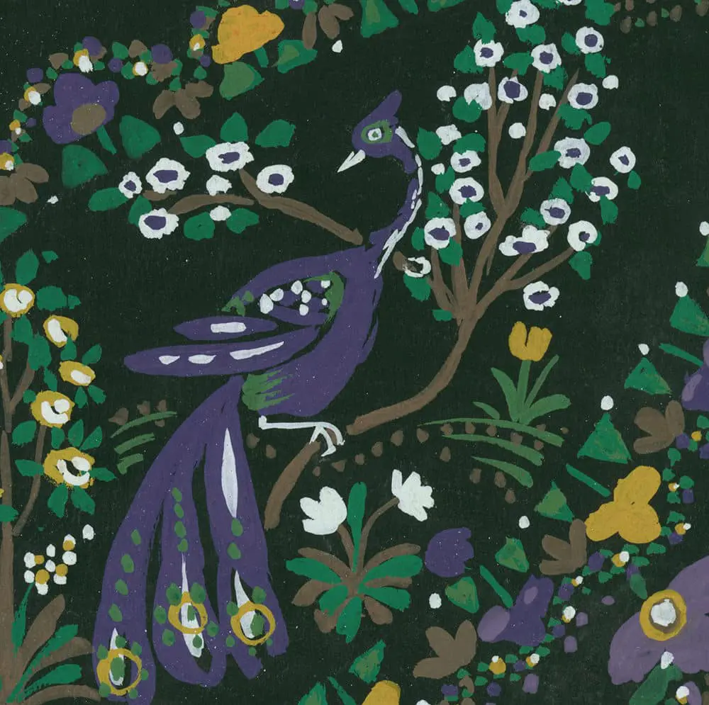This hand-painted artwork on paper showcases an original 1960s Persian paisley design, featuring vibrant flowers, figures, and peacocks. It's part of the archive of Bianchini Ferier, a renowned Lyon-based printing company that catered to esteemed couturiers such as Poiret, Vionnet, Chanel, Schiaperelli, and Dior. This piece, sold at Christie's in London in 2001, reflects the company's legacy of employing top artists, including the famous Raoul Dufy. Measuring 19 inches (48 cm) by 27 inches (69 cm), it's in excellent condition.