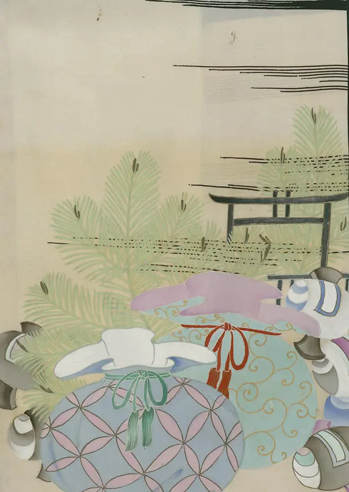 This artwork is featured on pages 230-231 of Ceremonial Textiles of Japan, 18th to 20th Centuries. This book, published by Yorke Antique Textiles, can be previewed or purchased on our website here.