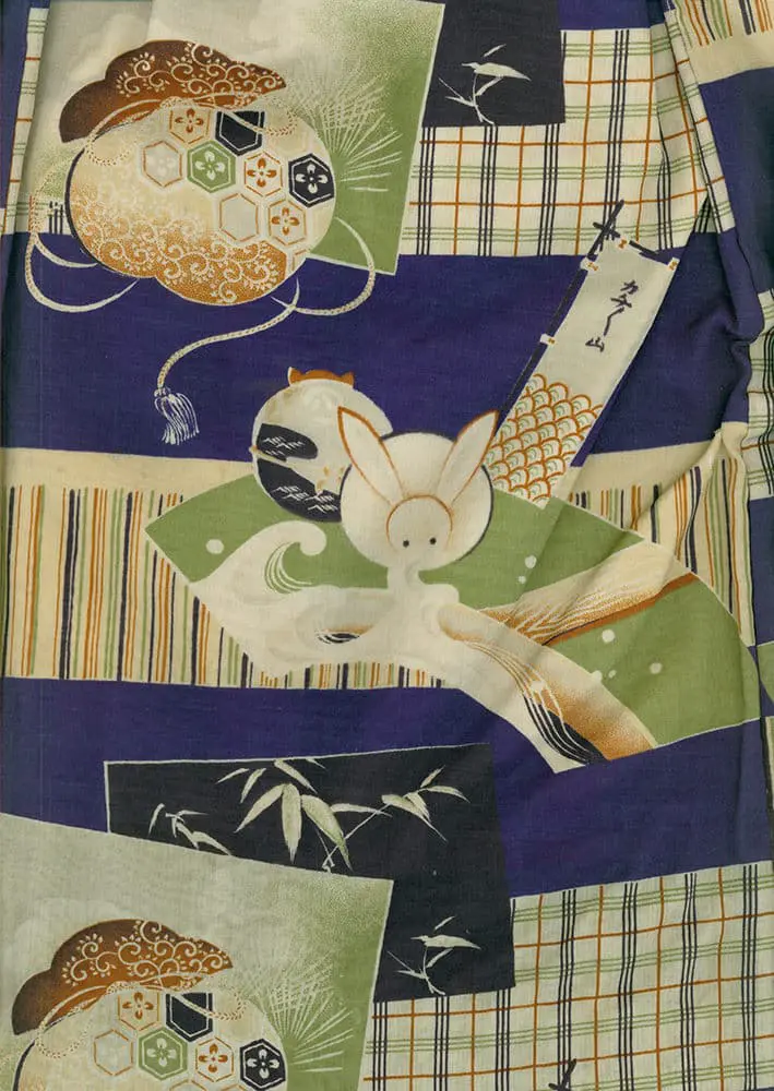 This small cotton kimono, measuring 32 inches by 32 inches, unfortunately features a hole on the front side along with various other imperfections. Despite these flaws, it may still hold value for certain purposes like crafting, repurposing, or as a display piece where imperfections are not a concern.