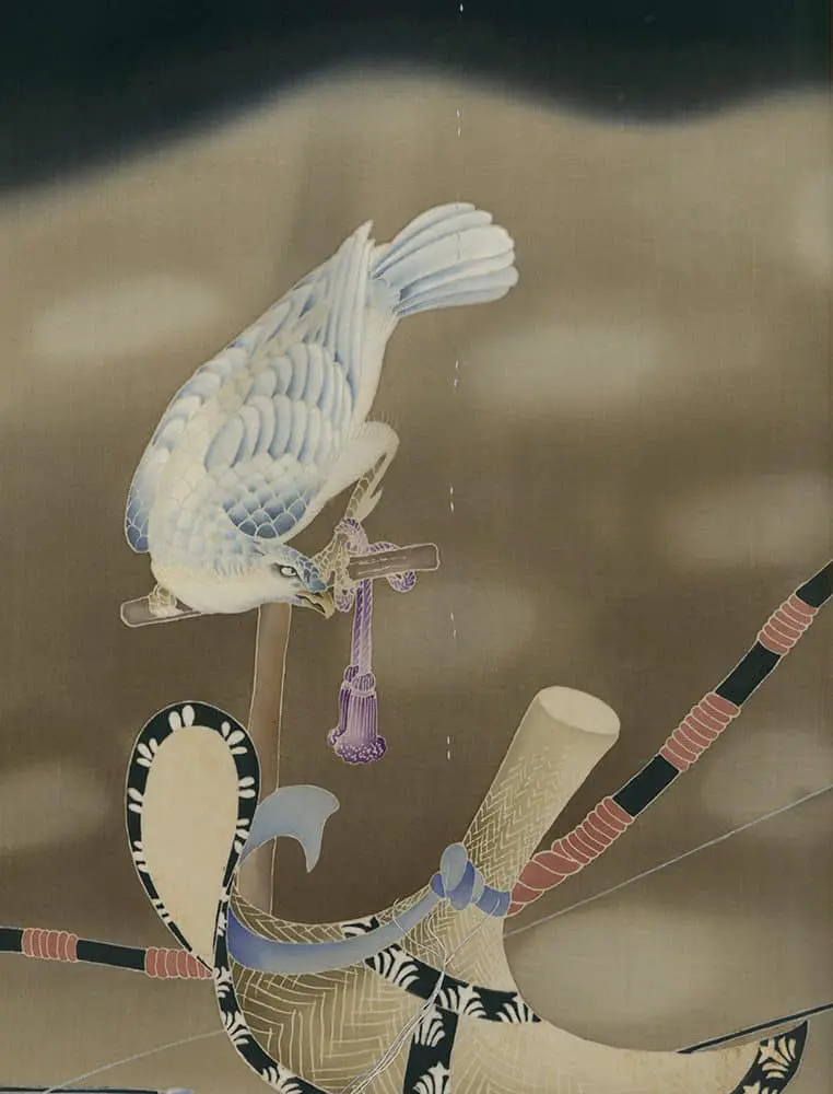 This artwork is featured on pages 264-267 of Ceremonial Textiles of Japan, 18th to 20th Centuries. This book, published by Yorke Antique Textiles, can be previewed or purchased on our website here.