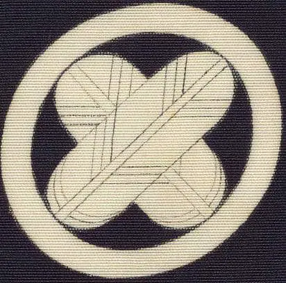 It bears five large mon (family crests) and has one small prominent stain on the back left side. The kimono measures 33 inches (84 cm) from sleeve-end to sleeve-end and stands at 37 inches (94 cm) tall.