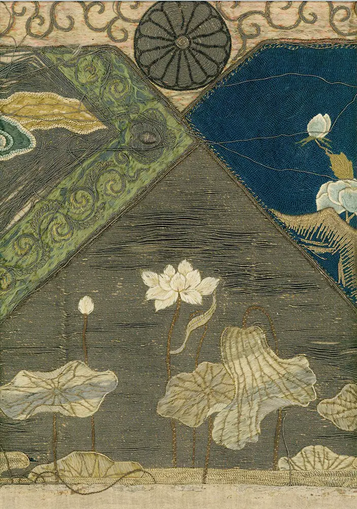 This artwork is featured on pages 110-113 of Ceremonial Textiles of Japan, 18th to 20th Centuries. This book, published by Yorke Antique Textiles, can be previewed or purchased on our website here.