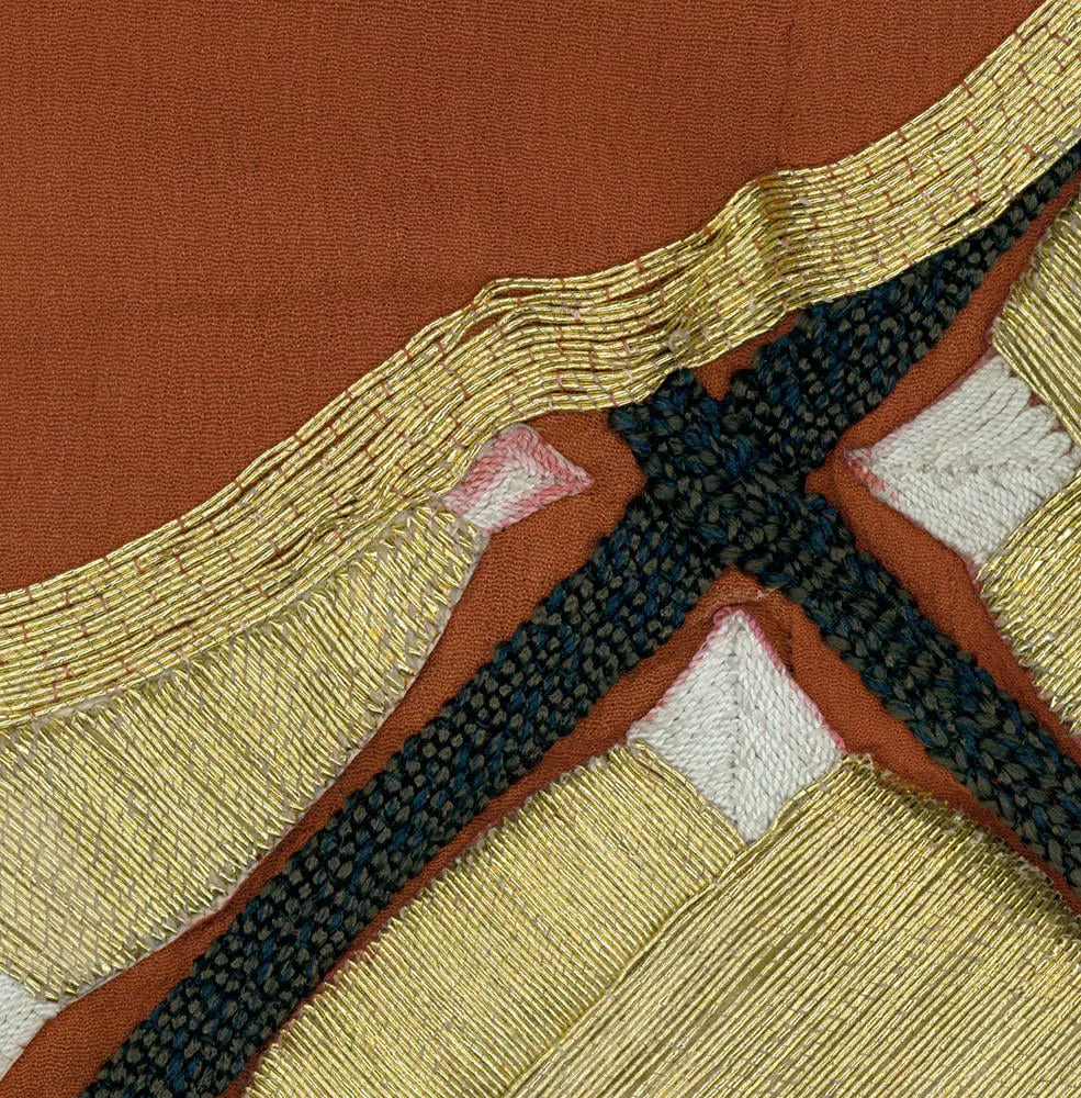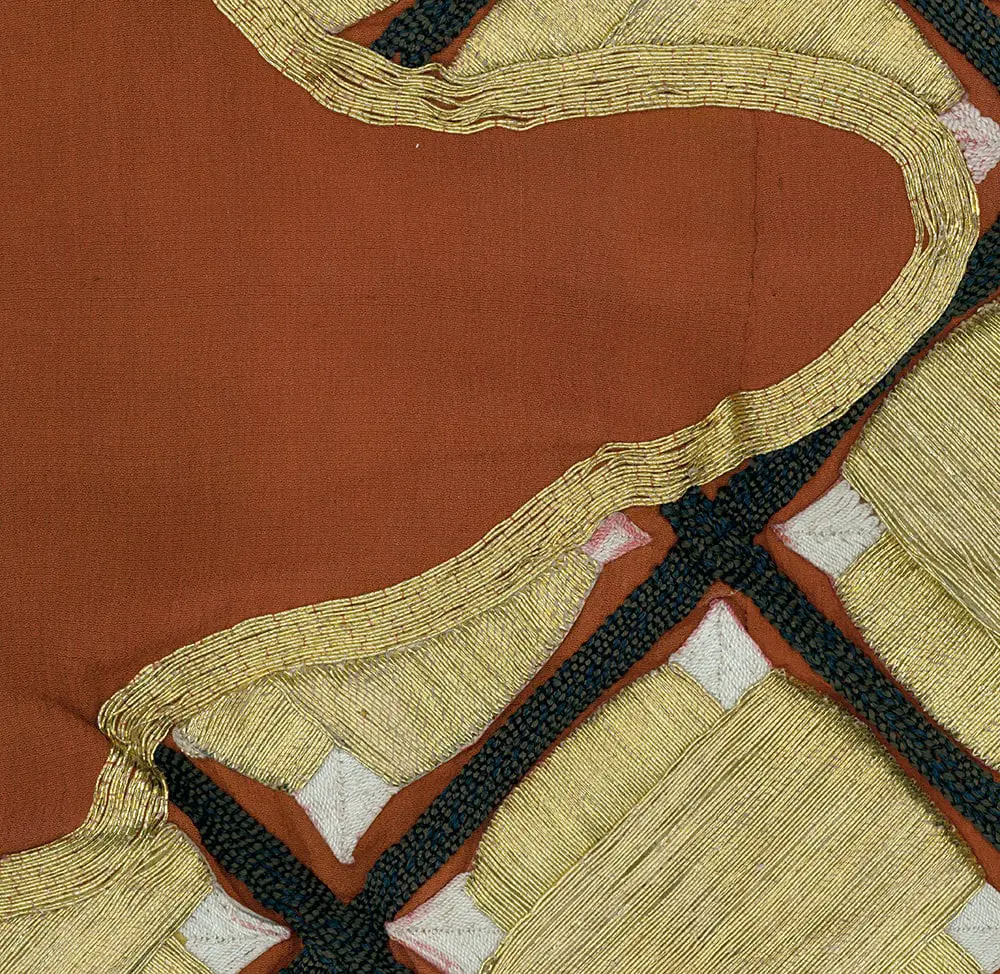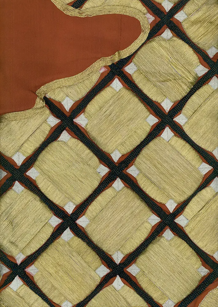 The embroidery, predominantly in gold, holds its own symbolism. Gold, or 'kin,' carries associations with royalty and represents heavenly elements. It's commonly used to adorn religious statues and temples, signifying divine presence and reverence.