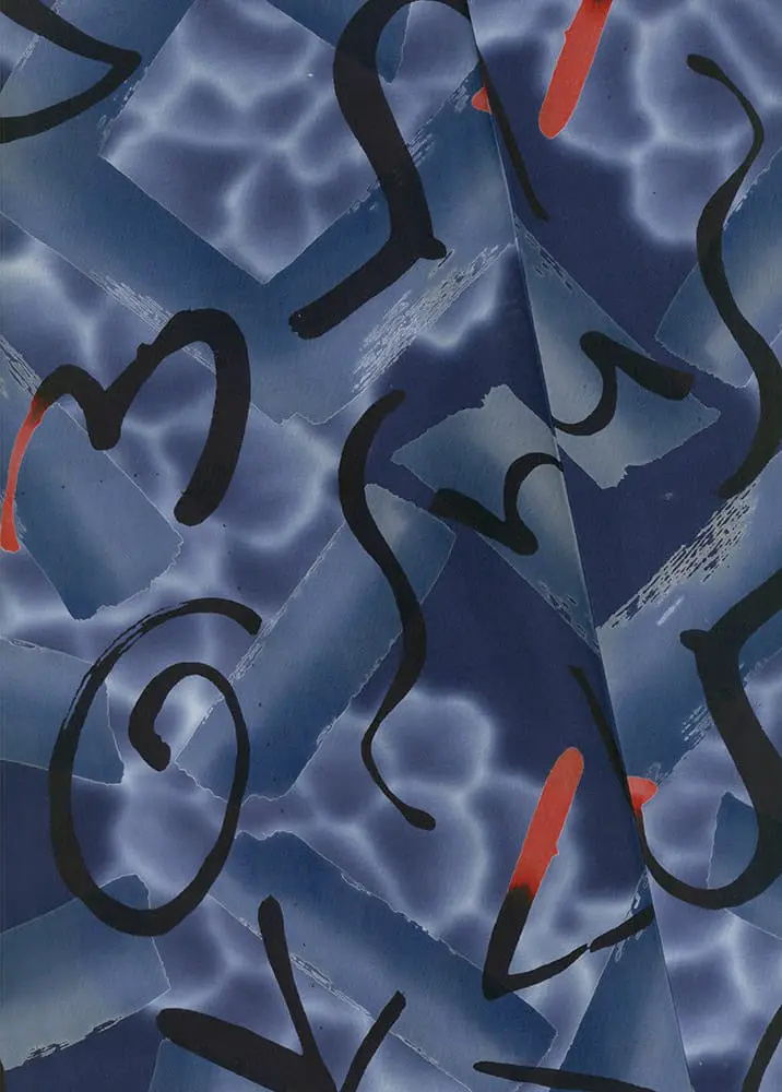 The pattern's organic, flowing forms suggest both natural phenomena—perhaps wind currents, water eddies, or atmospheric movements—and the gestural brushstrokes characteristic of abstract painting. This dual reading aligns with Japanese aesthetic principles that traditionally find artistic inspiration in natural forms, yet the execution is decidedly contemporary, eschewing the representational clarity of classical motifs in favor of suggestive abstraction. The repetitive nature of the pattern creates a sense of movement and energy that would have been considered quite progressive for kimono design, reflecting the period's embrace of Western artistic concepts while maintaining the fundamental structure of traditional Japanese dress.