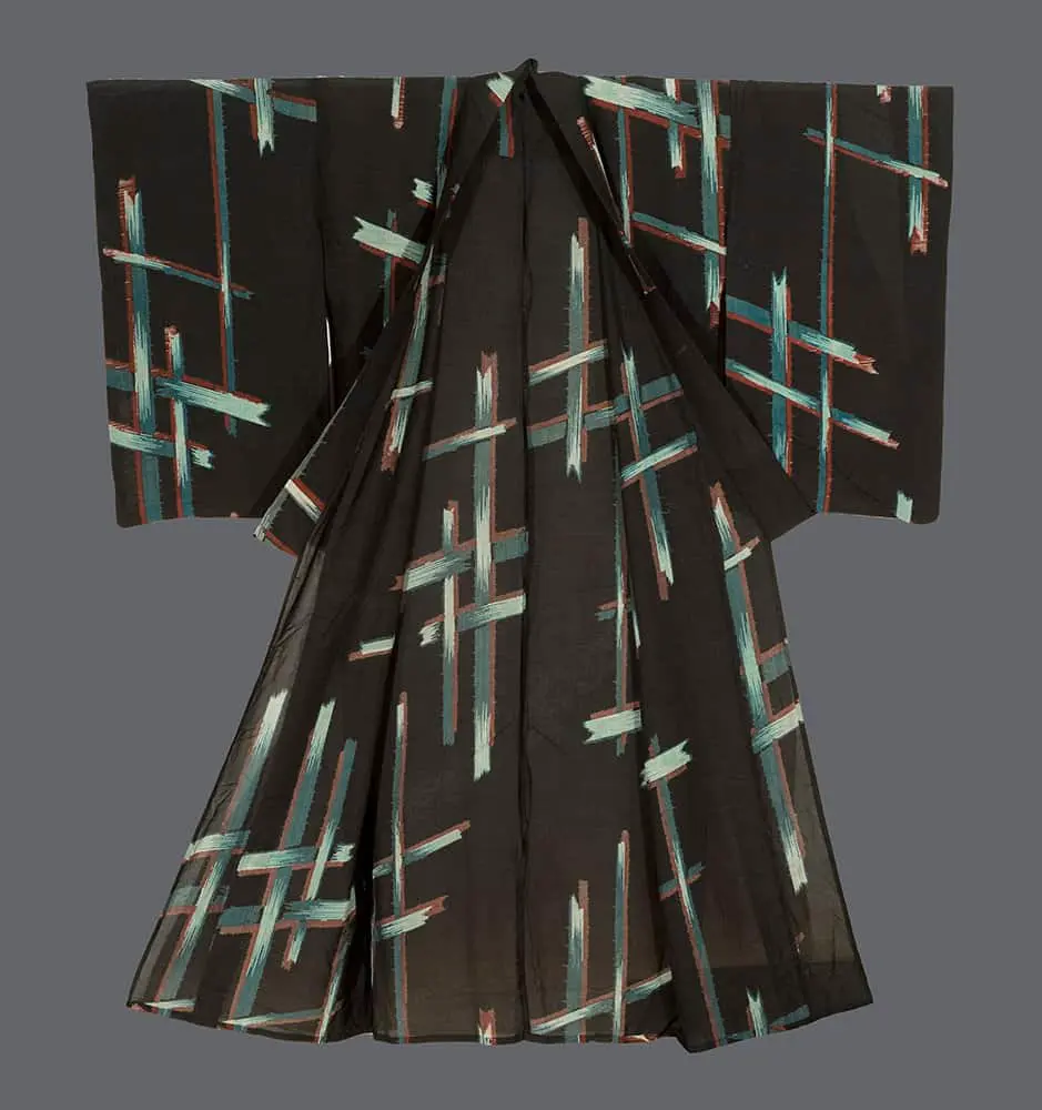 A hitoe (unlined summer kimono) that demonstrates sophisticated weaving techniques and modernist design sensibilities of the interwar period.