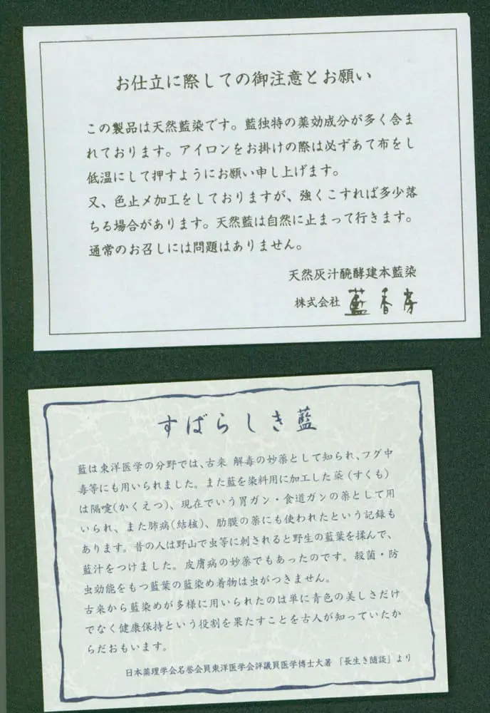 A large and stunning silk furisode featuring peony, wisteria and hydrangea motifs created utilizing a combination of weaving and shibori (tie-dye). Hiro-eri (unfolded) collar. Silk inner lining. This kimono comes with both paper and cloth certificates of origin. This furisode was certainly created by a custom workshop -- the art and craftsmanship are at a very high level, and this was both a labour-intensive and expensive undertaking. The shibori in particular is very precise and extensive. We have not seen another kimono with such a wonderful combination of weave and tie-die art. The first step in creating this furisode would have been to machine-programmed weave on white silk the complex flower patterns. The countless spots and areas to be left white were then tied, and then the garment repeatedly placed in a natural "ai" bath --"Ai" is an extremely fast, deep blue dye obtained from the "tadeai" plant in Japan. Once the desired shade of indigo blue is attained, the garment is left for a final dry and the shibori "ties" released. This kimono comes with both cloth and paper documentation from the custom workshop, attesting to the use of the natural "ai" blue dye, a dyeing art in Japan. Excellent condition. 53" from sleeve-end to sleeve-end x 62" height.