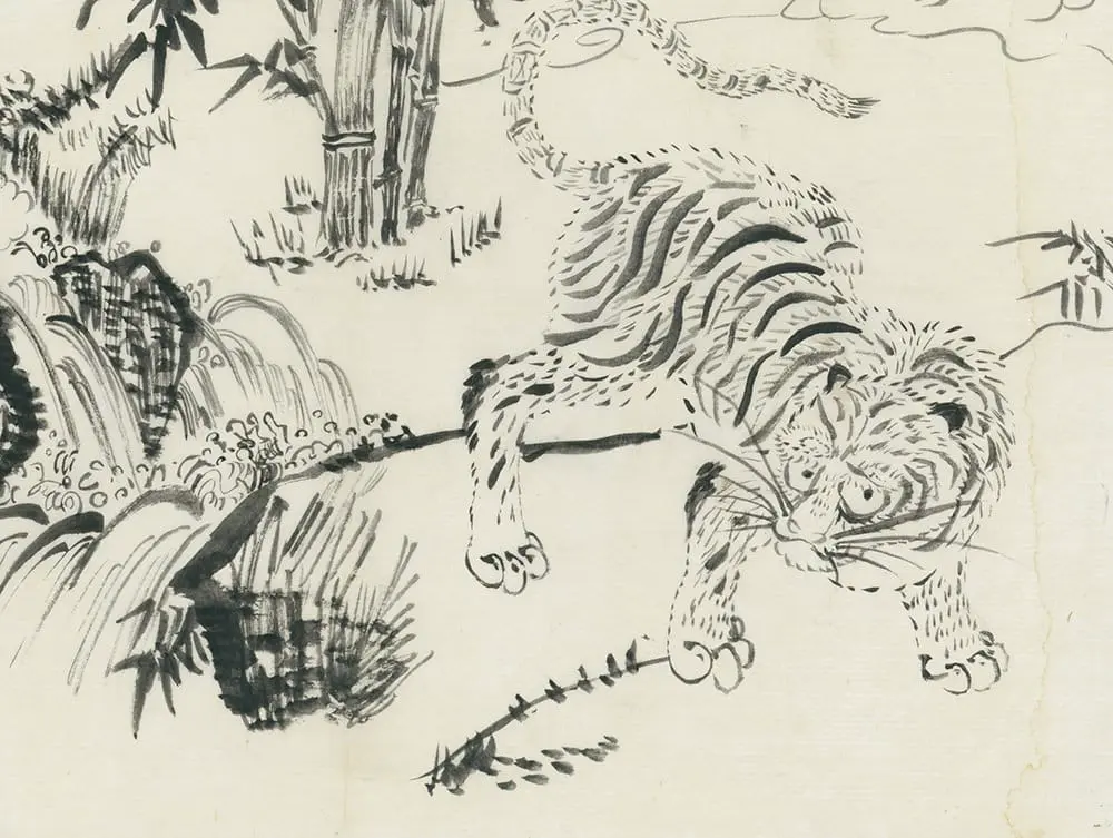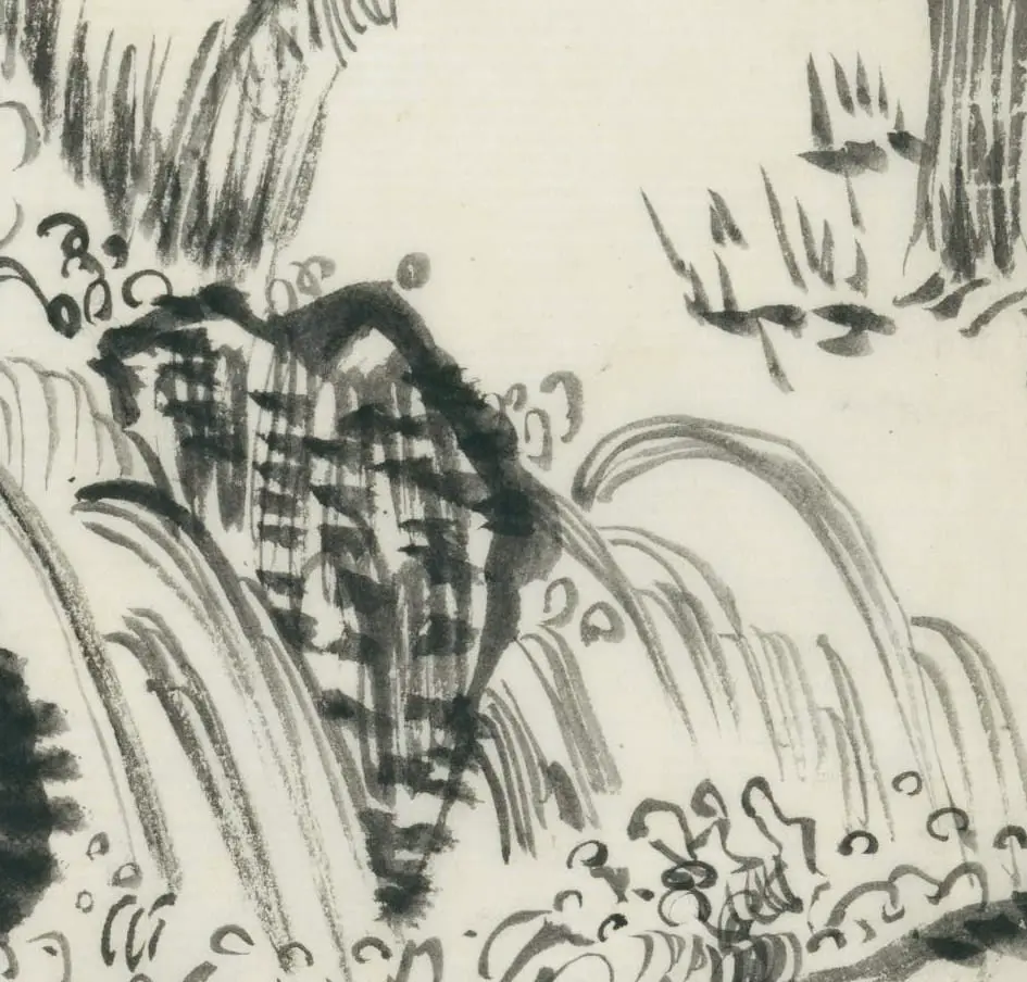 This is an ink drawing on exceptionally fine rice paper, possibly crafted as a practice piece within a kimono dyeing workshop. It measures 15 inches by 11 inches (38 cm x 28 cm). These practice drawings often serve as exercises for artisans refining their skills in kimono dyeing, showcasing designs or patterns in ink that might later be replicated on fabric for kimono production.