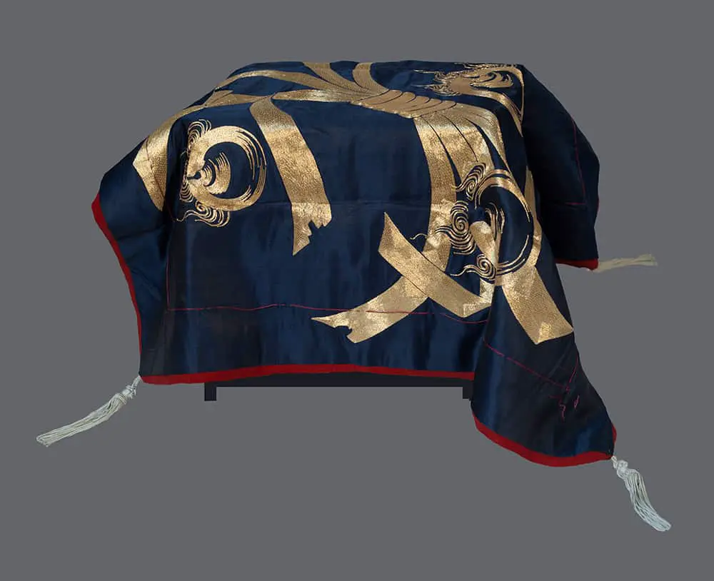 This artwork is featured on pages 190-193 of Ceremonial Textiles of Japan, 18th to 20th Centuries. This book, published by Yorke Antique Textiles, can be previewed or purchased on our website here.