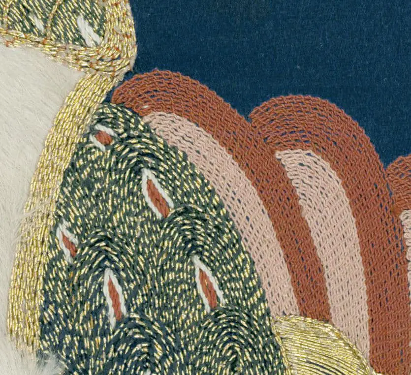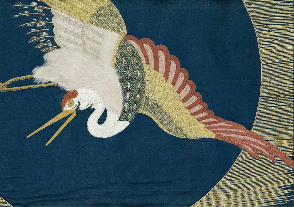 This artwork is featured on page 132 of Ceremonial Textiles of Japan, 18th to 20th Centuries. This book, published by Yorke Antique Textiles, can be previewed or purchased on our website here.