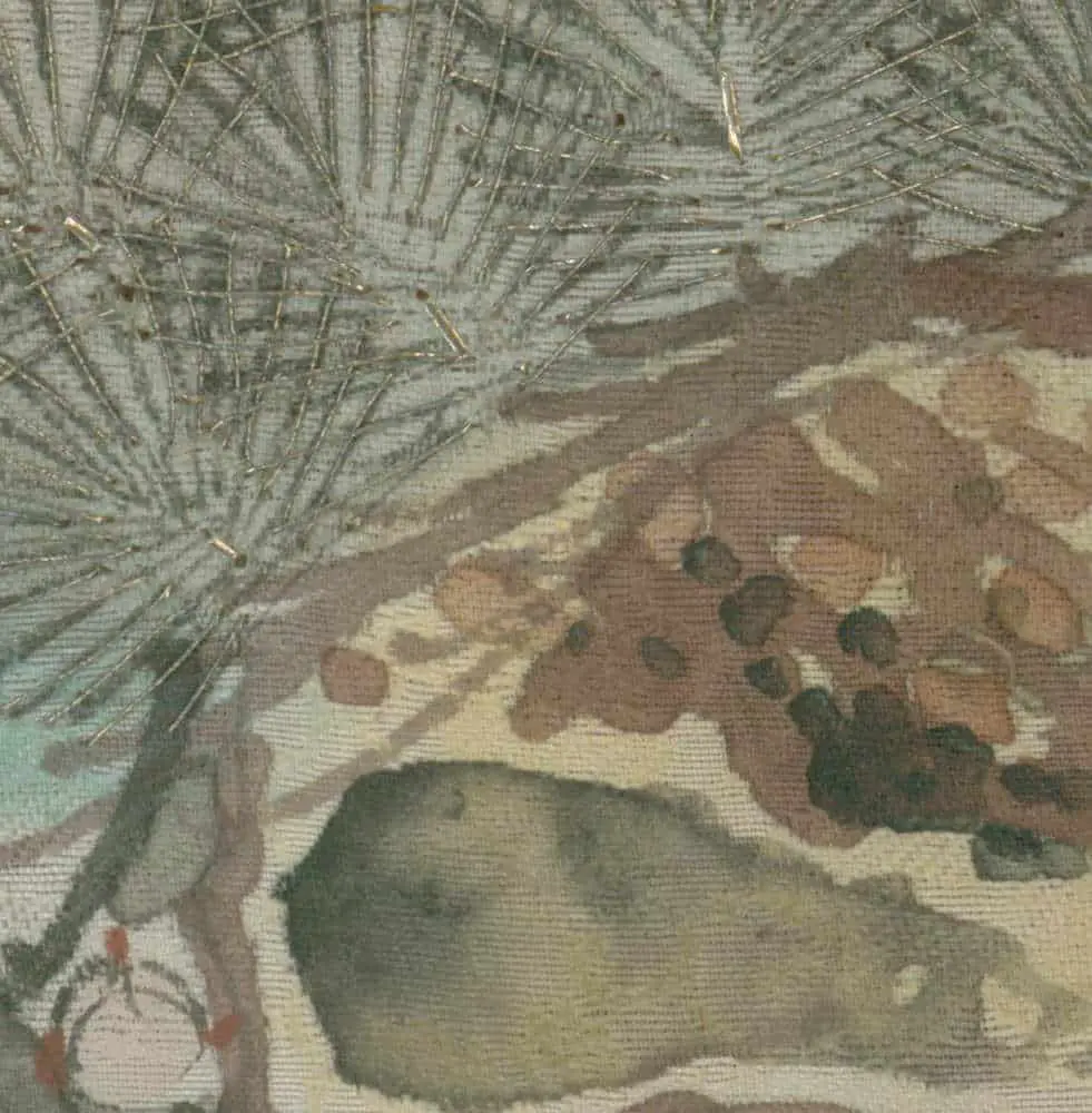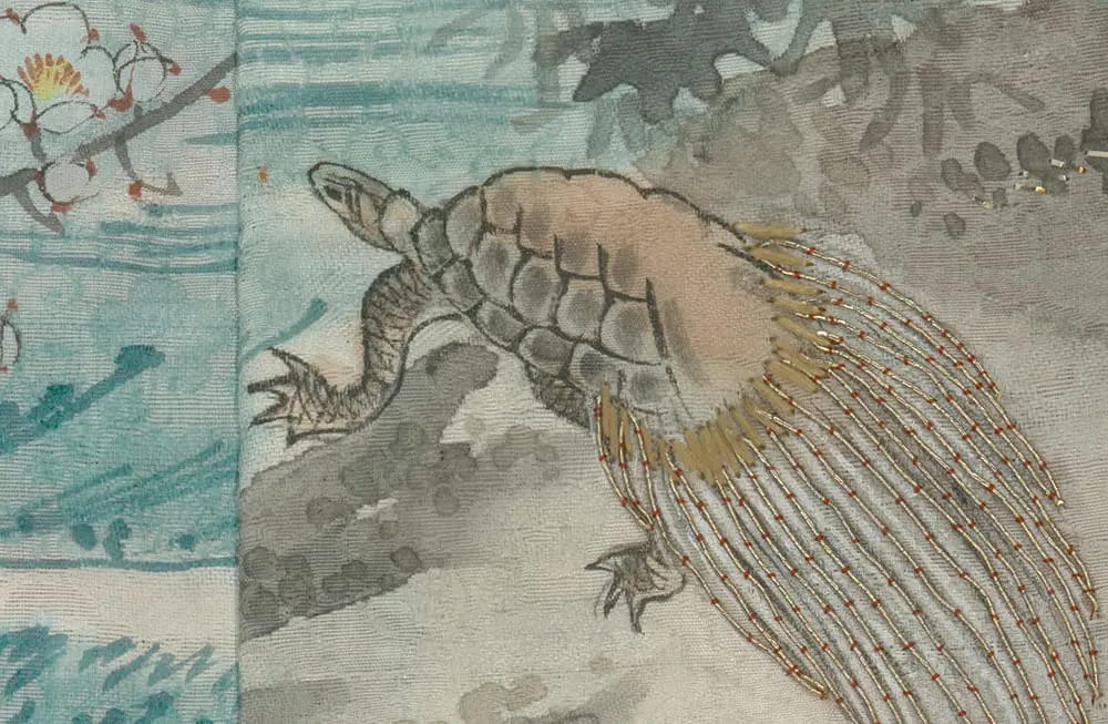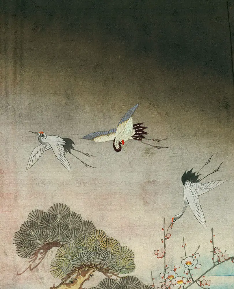 This artwork is featured on pages 364-367 of Ceremonial Textiles of Japan, 18th to 20th Centuries. This book, published by Yorke Antique Textiles, can be previewed or purchased on our website here.