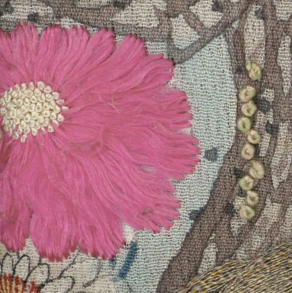 The botanical elements include scattered pine needles and branches, chrysanthemums in vibrant coral and soft pink tones, and what appear to be cherry blossoms, all executed with varying techniques that create rich textural contrast. The inclusion of tortoise motifs, though more subtly integrated into the overall pattern, completes a triumphant collection of symbols representing longevity, good fortune, and marital happiness - appropriate for this bridal garment. The artistic approach reflects the influence of classical yamato-e painting traditions while incorporating the refined color sensibilities of the Edo period's mature aesthetic. The sophisticated interplay of sumi-e ink painting with elaborate sagara and three-dimensional metallic embroidery demonstrates the period's technical virtuosity, creating a garment that functions as both ceremonial dress and wearable artistic statement celebrating nature's eternal cycles and life's most auspicious moments.