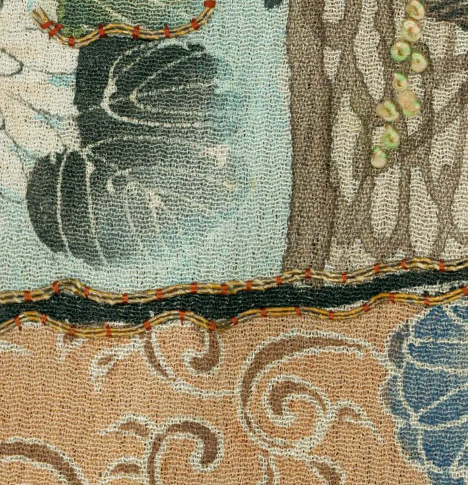However, it's in fair condition, with several small holes, particularly on the front. The back is relatively better, except for one noticeable hole in one sleeve and minor staining. It measures 48 inches (122 cm) from sleeve-end to sleeve-end and stands at 56 inches (142 cm) in height.