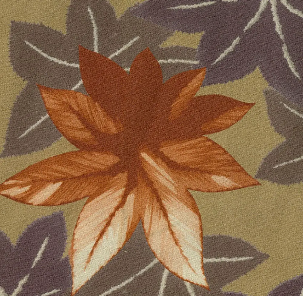This airy chirimen-silk jacket showcases silk-screened autumn maple leaves and is in very good condition. It measures 50 inches (127 cm) from sleeve-end to sleeve-end and stands at a height of 37 inches (94 cm).