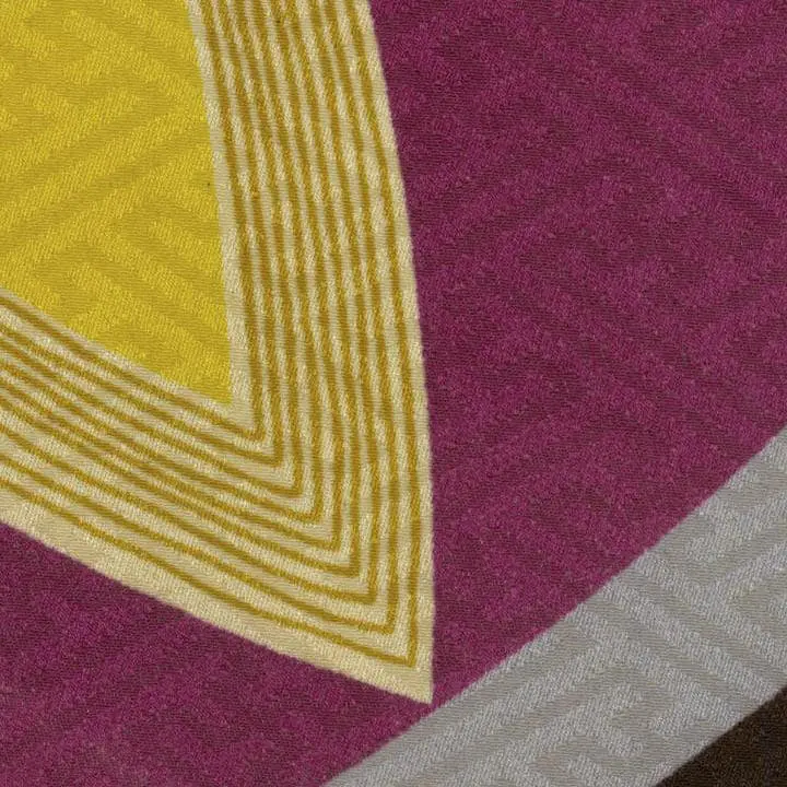 This design embodies the quintessential Art Deco aesthetic through its bold scale, dramatic color contrasts, and geometric stylization of natural forms. The vivid palette - golden yellow, fuchsia magenta, turquoise blue, and silver-white against deep black - reflects the period's embrace of synthetic dyes and the international taste for vibrant, jewel-like colors that emerged in the 1920s and 1930s.