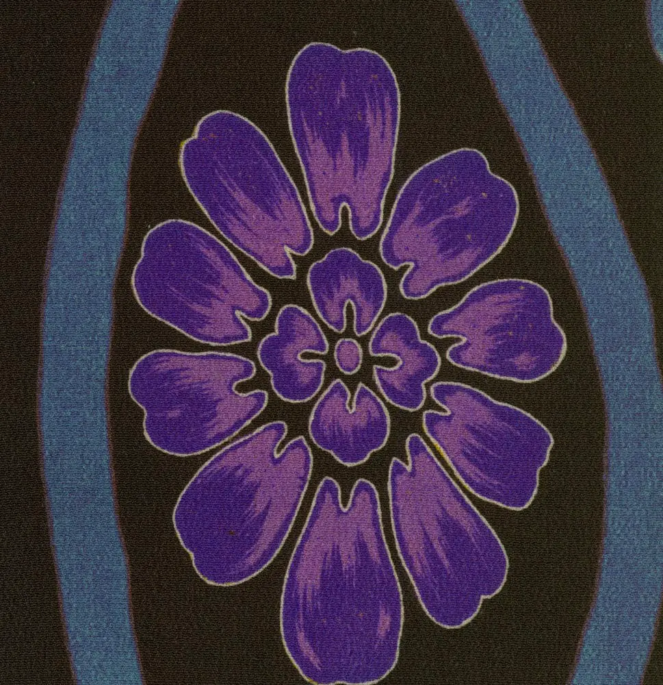 The color palette - particularly the striking contrast between the deep black ground and the jewel-toned chrysanthemums - reflects both traditional Japanese aesthetic preferences for dramatic color relationships and the bold chromatic experiments of 1920s-30s international design. This piece exemplifies how Japanese textile artists of the interwar period successfully modernized classical motifs while maintaining their cultural significance and symbolic meaning.