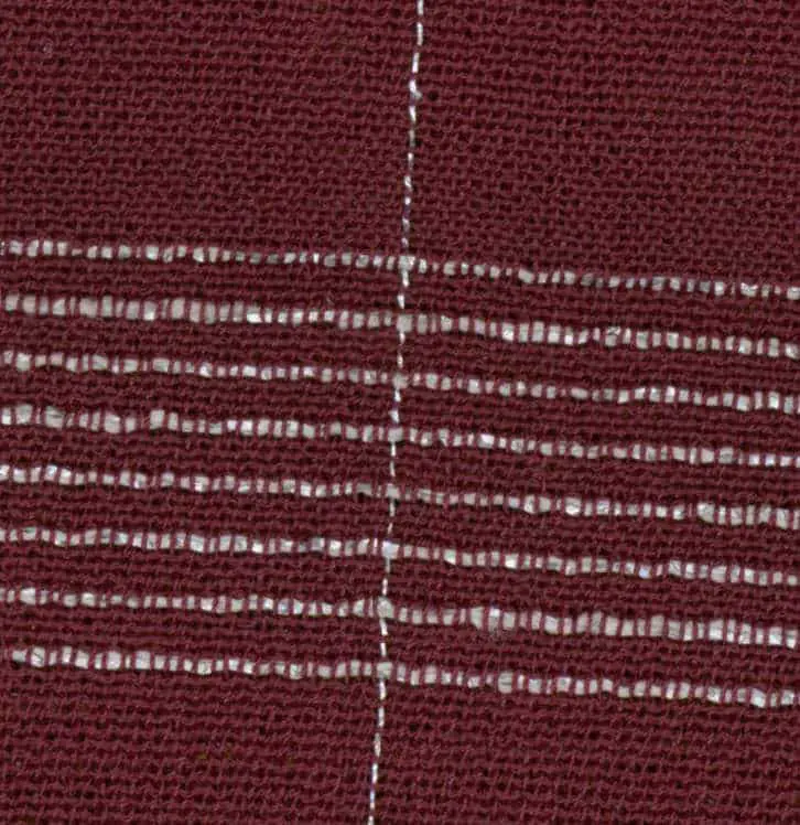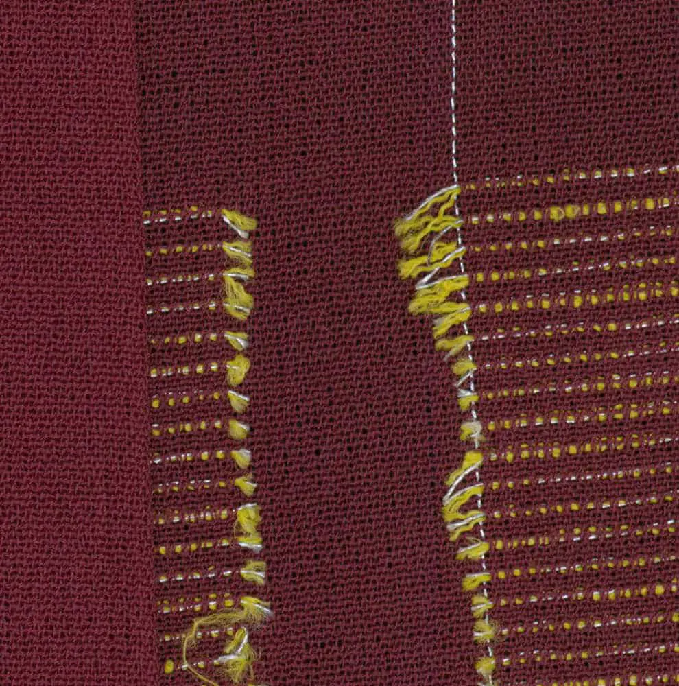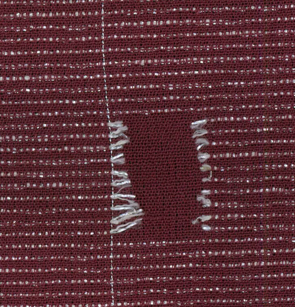 The cross-like forms could carry multiple symbolic meanings within Japanese cultural context - they might reference traditional family crests (mon), architectural elements, or even suggest protective talismans. The systematic repetition of these forms across the textile creates a sense of rhythm and movement that transforms what could be static symbols into dynamic visual elements. The detail images reveal the sophisticated construction technique, showing how the supplementary threads are worked to create raised, tactile surfaces that would have added both visual and physical richness to the garment when worn.