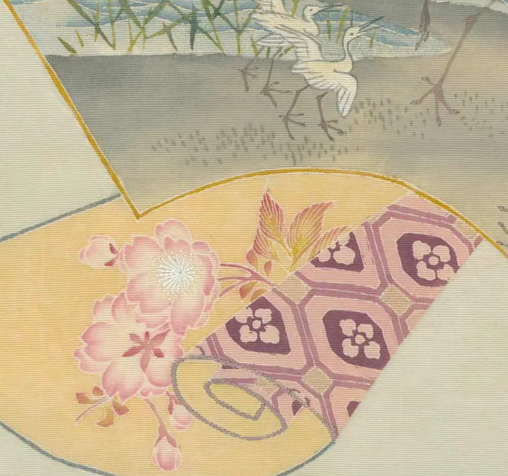 This artwork is featured on pages 136-137 of Ceremonial Textiles of Japan, 18th to 20th Centuries. This book, published by Yorke Antique Textiles, can be previewed or purchased on our website here.