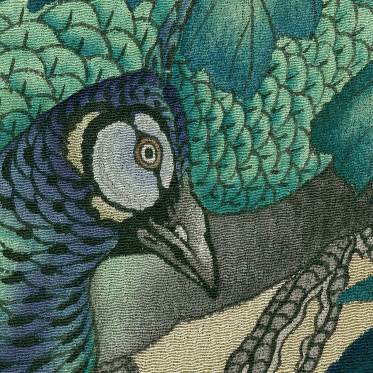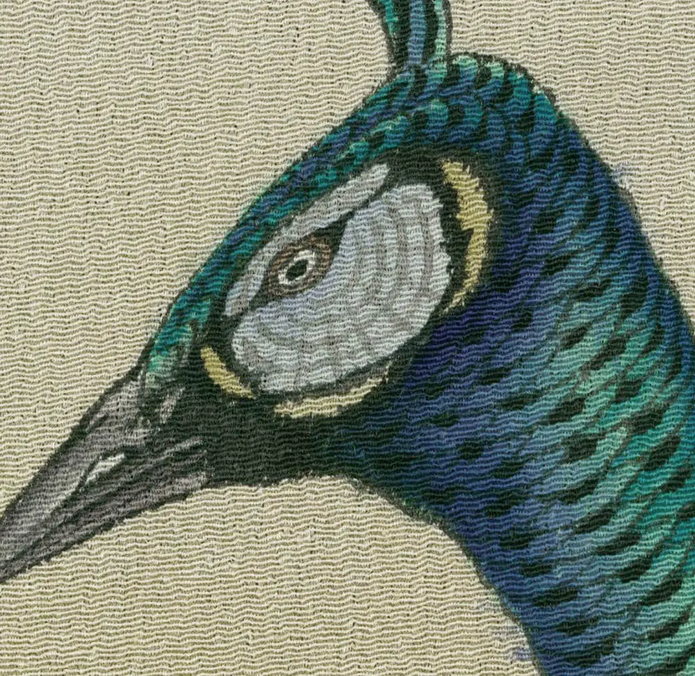 This large chirimen silk kaga fukusa showcases two peacocks surrounded by flowers, exquisitely crafted by a master adept in yuzen-dyeing and sumi-e techniques. The workmanship is of exceptional quality, displaying superb artistry. Overall, it's in very good condition, with only minor imperfections. Its measurements are 40 inches by 41 inches (101.6 cm x 104.1 cm).