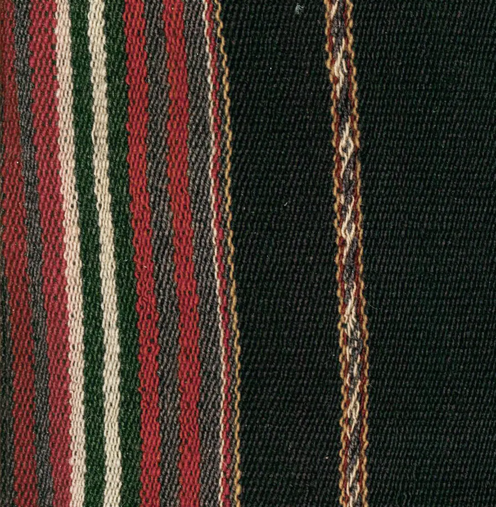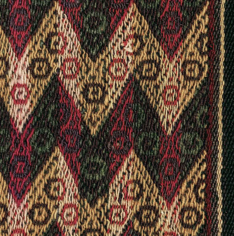 A ceremonial alpaca woman's aksu (mantle) showcasing the signature patterns of the Macha weaving region. The gallery image depicts the folded top section.
