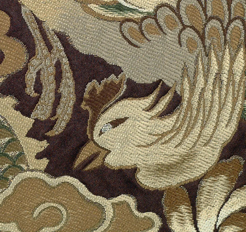This impeccable formal obi features intricate silk brocade work on both sides, showcasing exceptional craftsmanship and the finest quality silk. When folded, it measures 156 inches x 12.5 inches. The design features a dragon and phoenix, symbolizing Yin and Yang, representing a perfect balance.