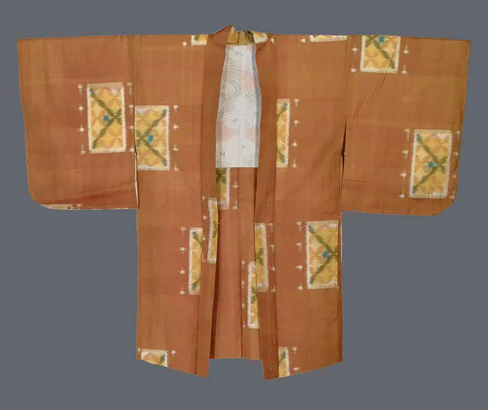 This excellent condition meisen silk haori measures approximately 48 inches (122 cm) from sleeve-end to sleeve-end and stands at 37 inches (94 cm) in height.