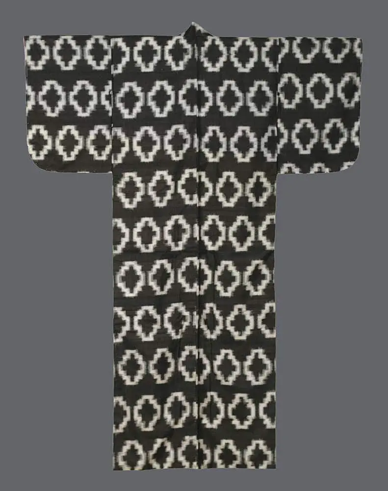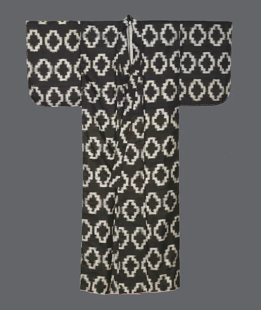 This silk meisen kimono, measuring 48 inches from sleeve-end to sleeve-end and standing 57 inches tall (122 cm x 145 cm), is in very good condition overall. There are a few small stains noticeable on the inner lining, but they don't detract from the kimono's overall quality.