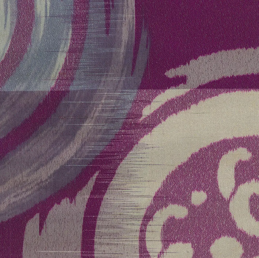 The meisen weaving technique, which flourished during the early-to-mid 20th century, allowed for this type of complex, painterly design through its innovative use of pre-dyed warps that created soft, impressionistic effects impossible with traditional weaving methods. The choice of rayon reflects the period's embrace of modern synthetic materials and the democratization of kimono production, making elaborate designs accessible to a broader population. The wave motif carries profound symbolism in Japanese culture, representing both the destructive and life-giving forces of nature, resilience in the face of adversity, and the cyclical nature of existence. This particular interpretation, with its bold scale and modern color palette, suggests influence from mid-century design trends while maintaining its connection to classical Japanese aesthetic principles.