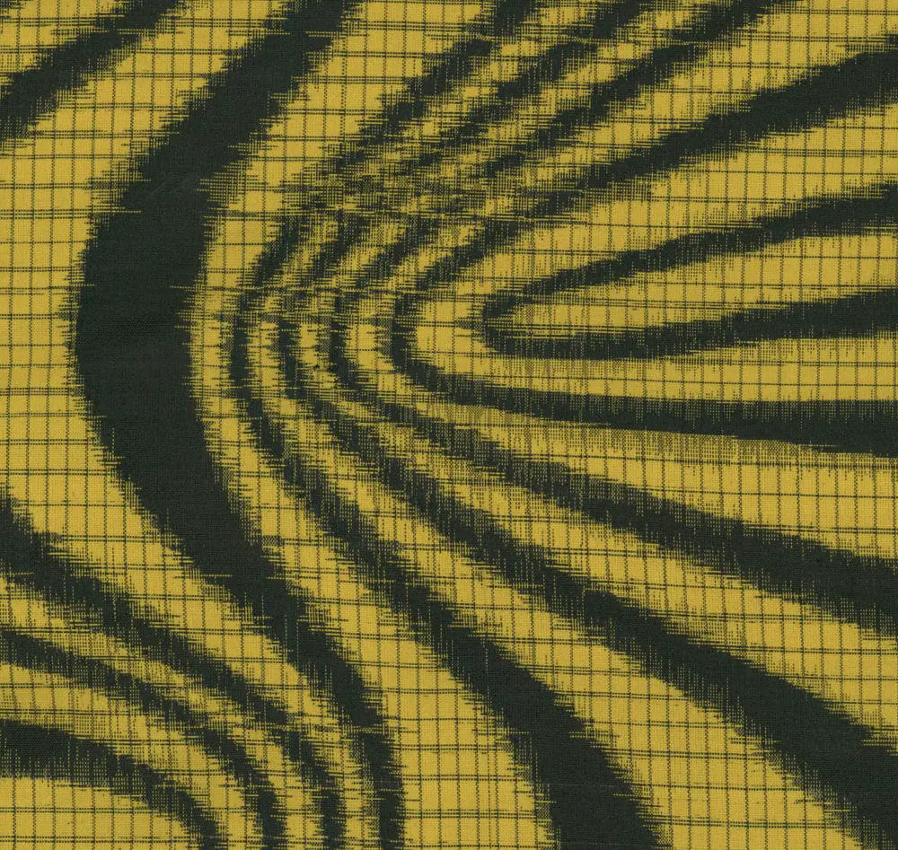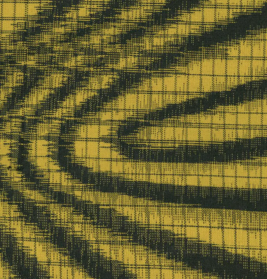 There are also echoes of Art Deco sensibilities in the bold, geometric stylization and the dramatic contrast between the metallic gold and deep black. The pattern could also be seen as anticipating the psychedelic aesthetic that would become popular in the 1960s counterculture, with its mesmerizing, almost hallucinogenic visual effects.