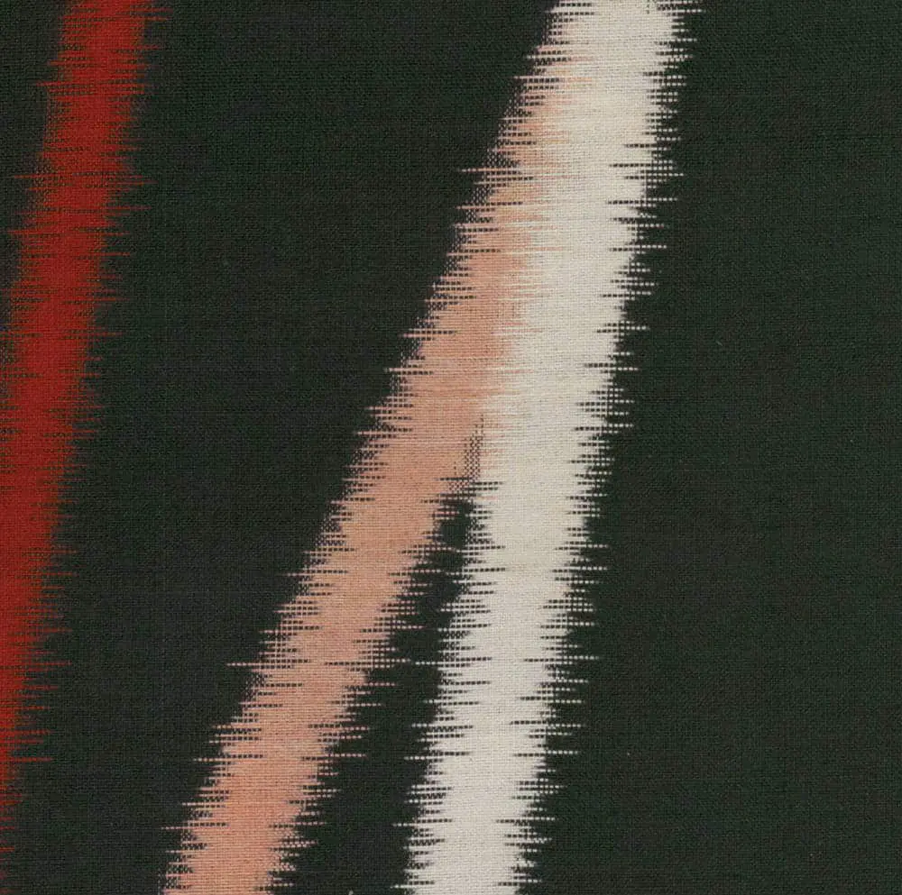The meisen weaving technique was perfectly suited to achieve these crisp, graphic effects. The ikat-resist dyeing process allowed for the sharp definition of these linear elements while maintaining the fluid quality essential to the design's success. The way the pattern flows across the kimono's surface without regard for traditional placement conventions shows how thoroughly Japanese designers had embraced modernist principles by the 1930s.