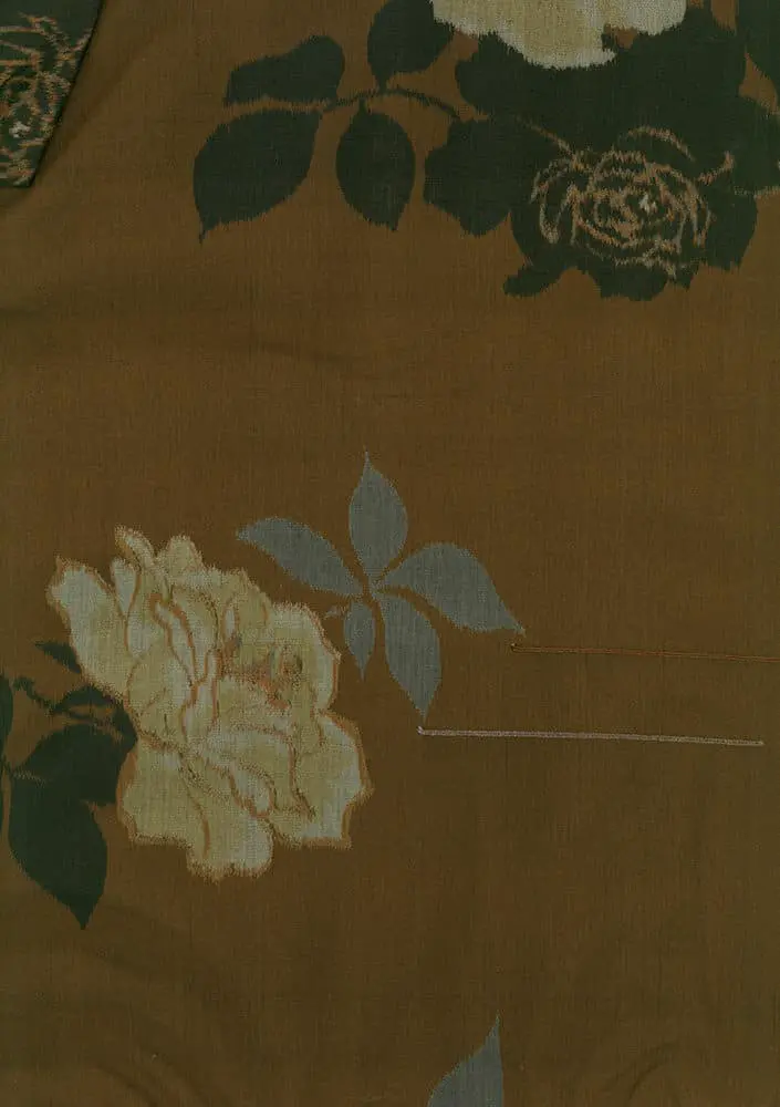 The meisen silk technique employed here demonstrates the transitional period in Japanese textile production when traditional hand-dyeing methods were being adapted to meet the demands of modern manufacturing while maintaining artistic quality. The slightly blurred edges characteristic of meisen weaving give the floral forms a soft, painterly quality that suggests Western influences, particularly the naturalistic flower painting traditions that were being absorbed into Japanese decorative arts during this period of cultural exchange.