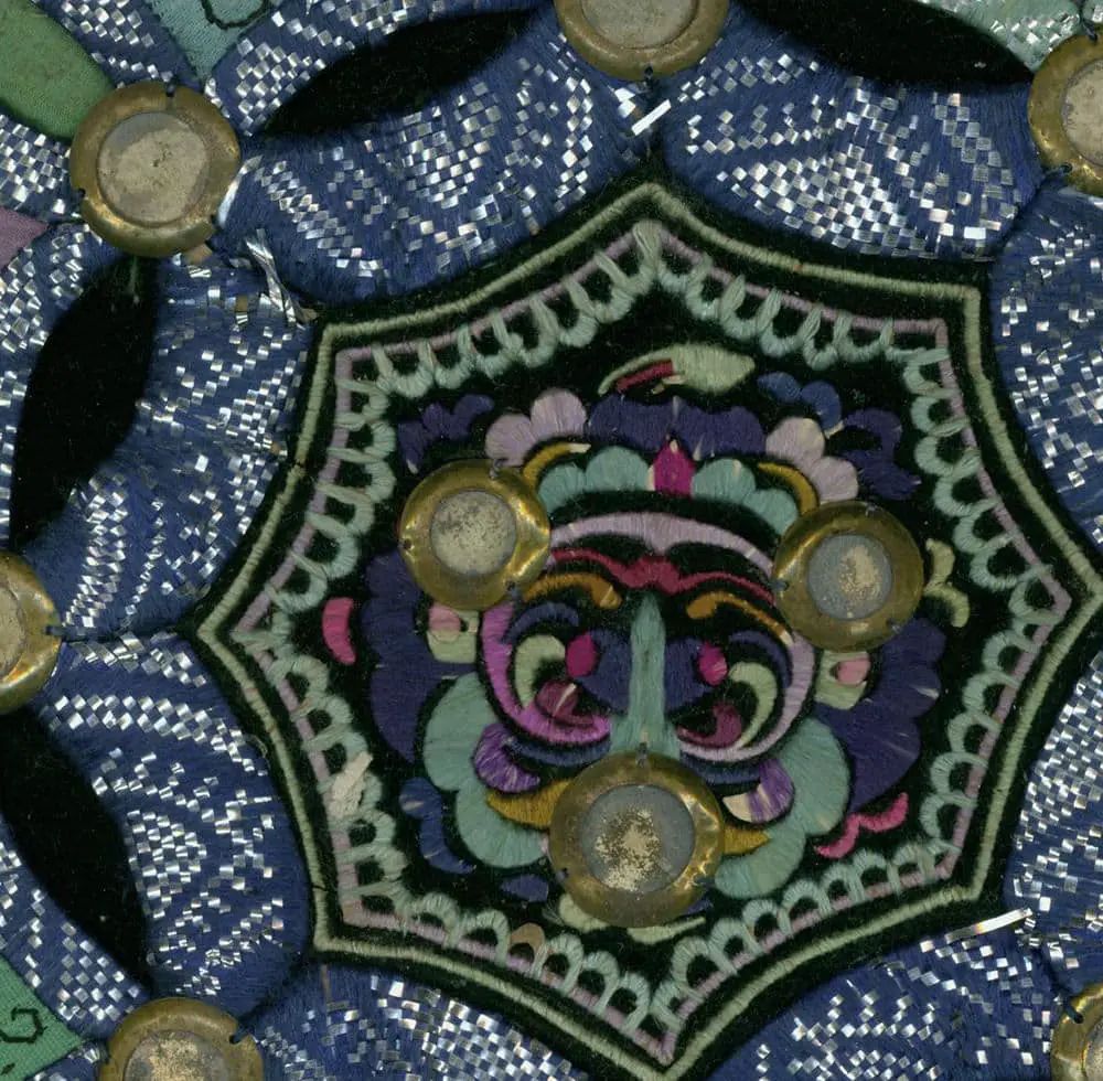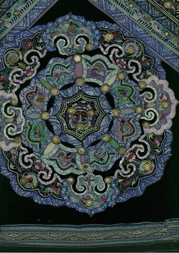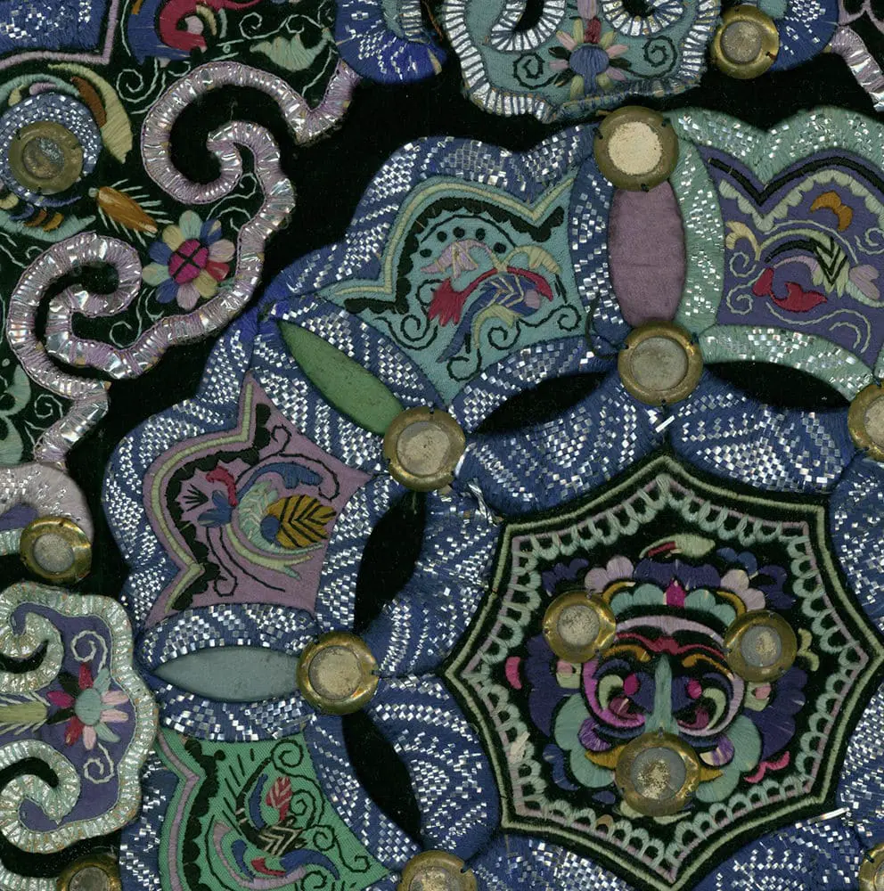 This silk embroidery is displayed on a combination of silk and black velvet, showcasing an excellent condition. Its measurements are 18 inches by 16 inches (46cm x 41cm).