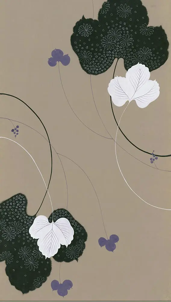 This watercolor on paper is an original and distinctive creation by a Japanese artist, intended to transpose its design onto a silk kimono through the yuzen resist-dye technique. It remains in very good condition and measures 21 inches by 11 inches (53 cm x 28 cm).