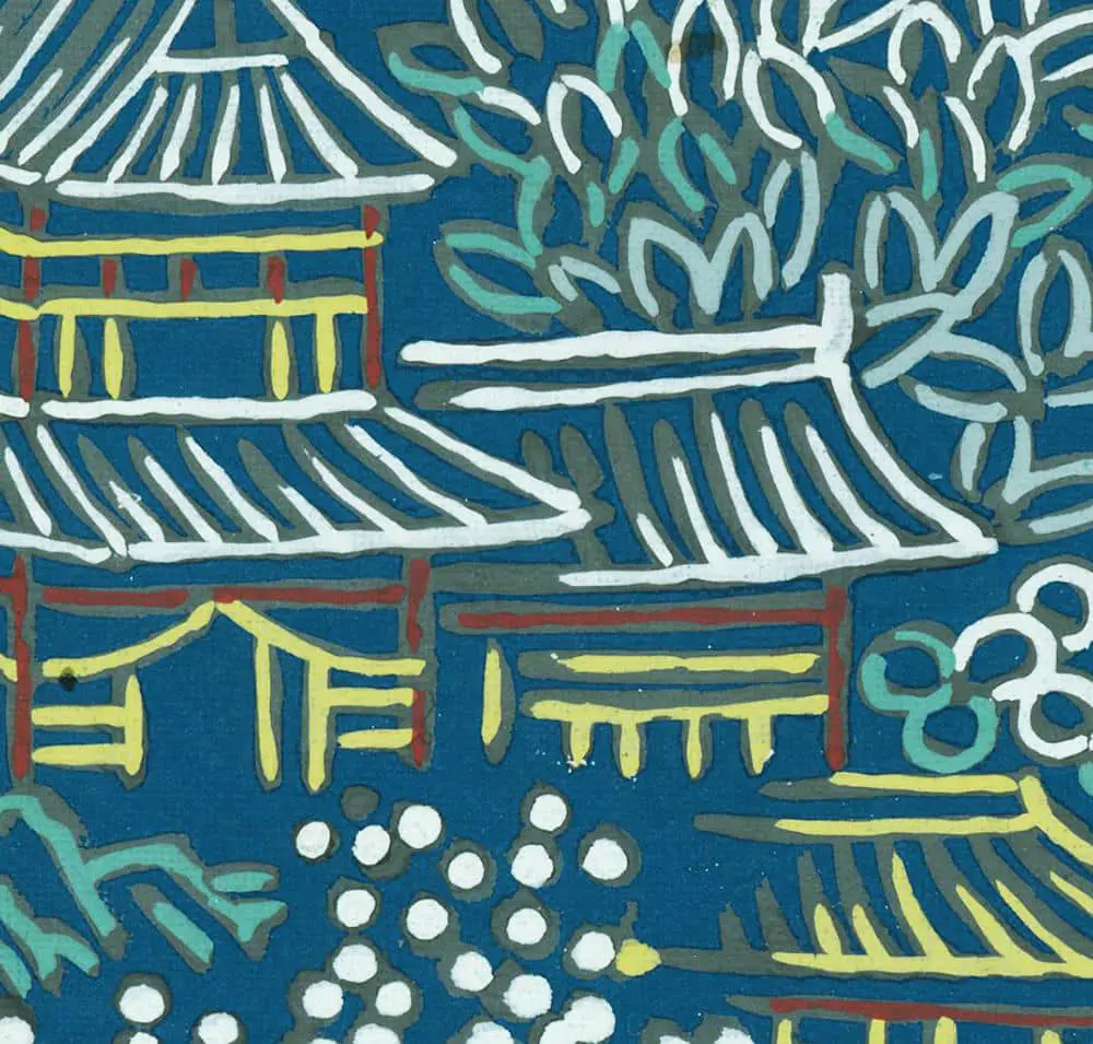 This original watercolor on paper was crafted by a Japanese artist specifically for transposing its design onto a silk kimono using the yuzen resist-dye technique. It's in very good condition and measures 24 inches by 10 inches (61 cm x 25 cm).