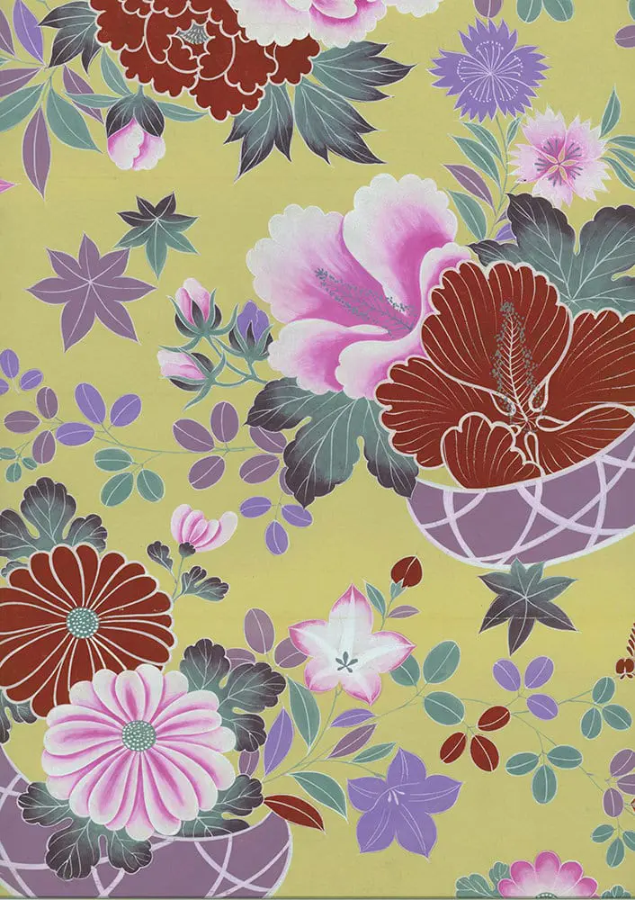This original watercolor on paper was specifically created by a Japanese artist to transpose its design onto a silk kimono using the yuzen resist-dye technique. It's in very good condition and measures 22 inches by 17 inches (56 cm x 43 cm).