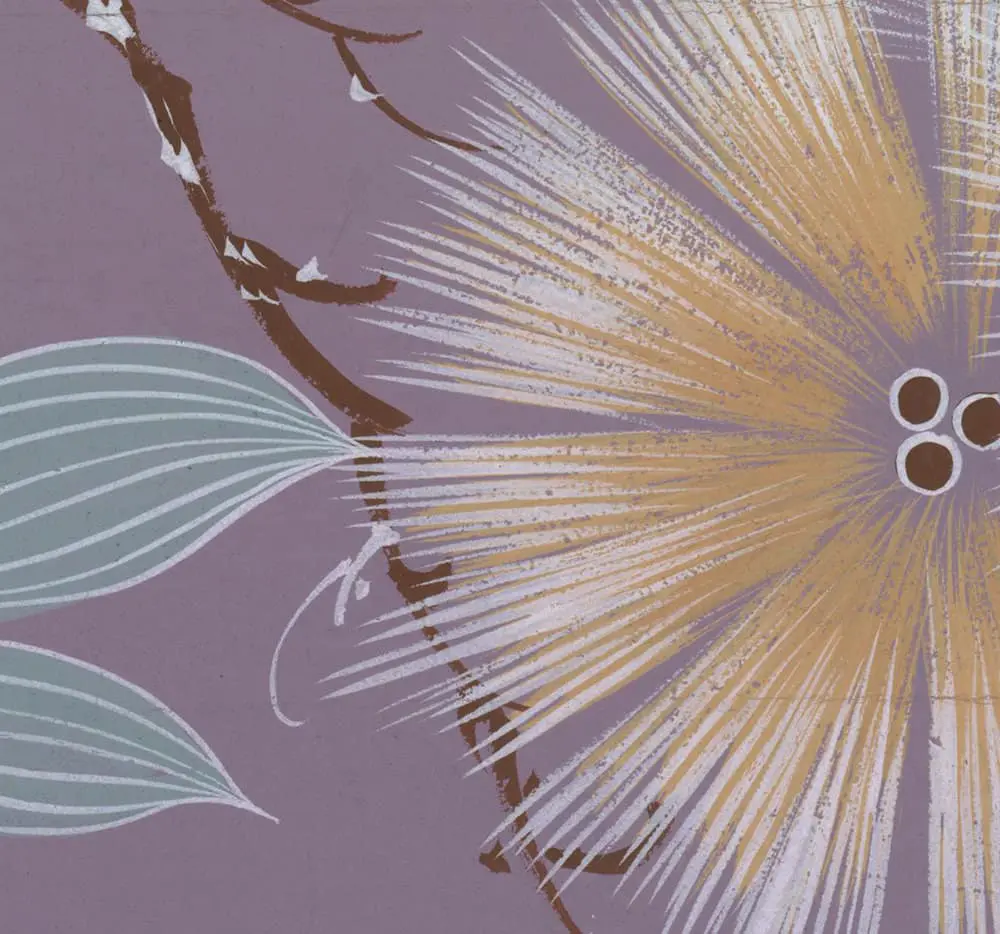 This original watercolor on paper was crafted by a Japanese artist for the purpose of transferring its design onto a silk kimono through the yuzen resist-dye technique. Despite being in very good condition, there is some damage at the corners. It measures 23 inches by 17 inches (58 cm x 43 cm).