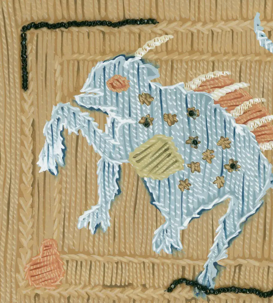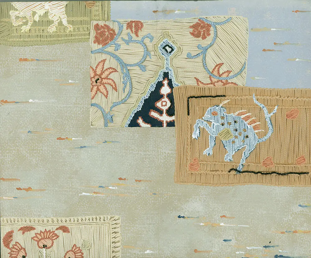 This artwork, a fusion of watercolor and beads on paper, is an original and distinctive creation by a Japanese artist, intended for the design of yuzen resist-dye work on a silk kimono. It remains in very good condition and measures 16 inches by 12 inches (41 cm x 30 cm).