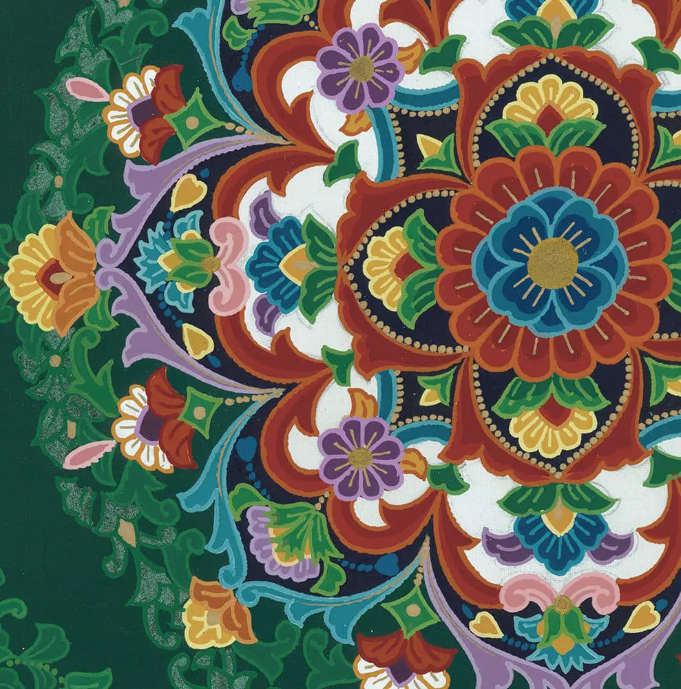 Paint on thick paper. This original and unique artwork was created by a Japanese artist in the famous Nishijin district of Kyoto. Such artwork was utilized to transpose it's design to a woven obi (wide traditional Japanese belt). Excellent condition. 12" x 27"