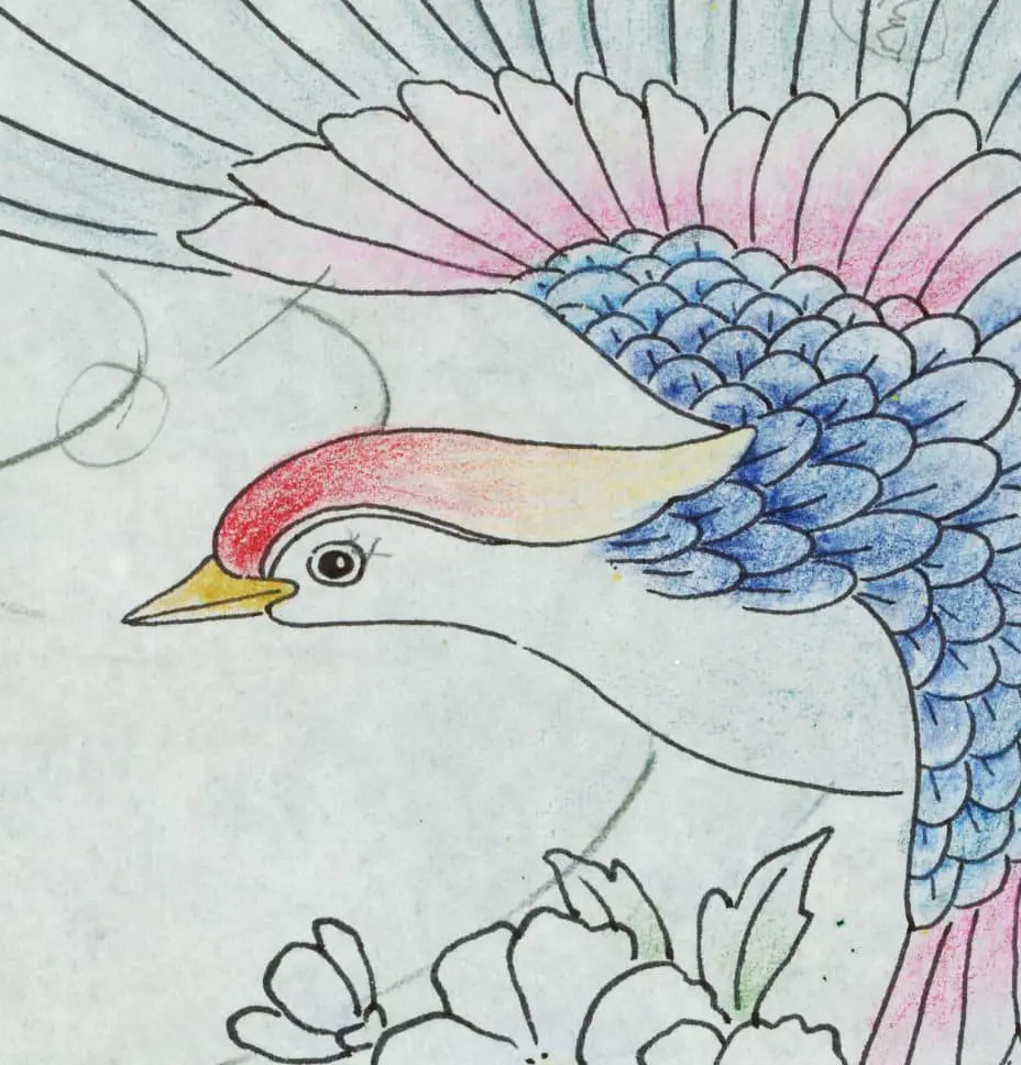 This unique artwork, drawn in pencil on thin semi-transparent paper by an artist from Kyoto's renowned Nishijin district, served as the template for a woven obi, a wide traditional Japanese belt. It remains in very good condition, measuring 12 inches (30 cm) by 29 inches (74 cm).