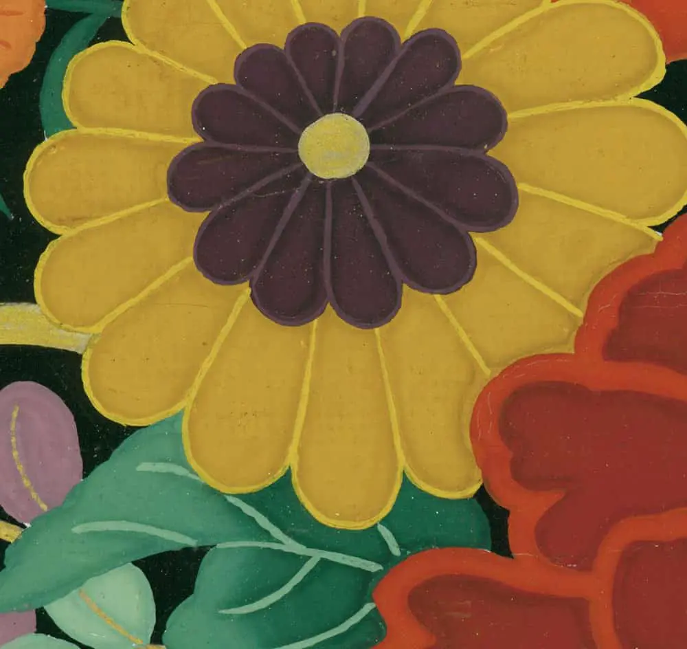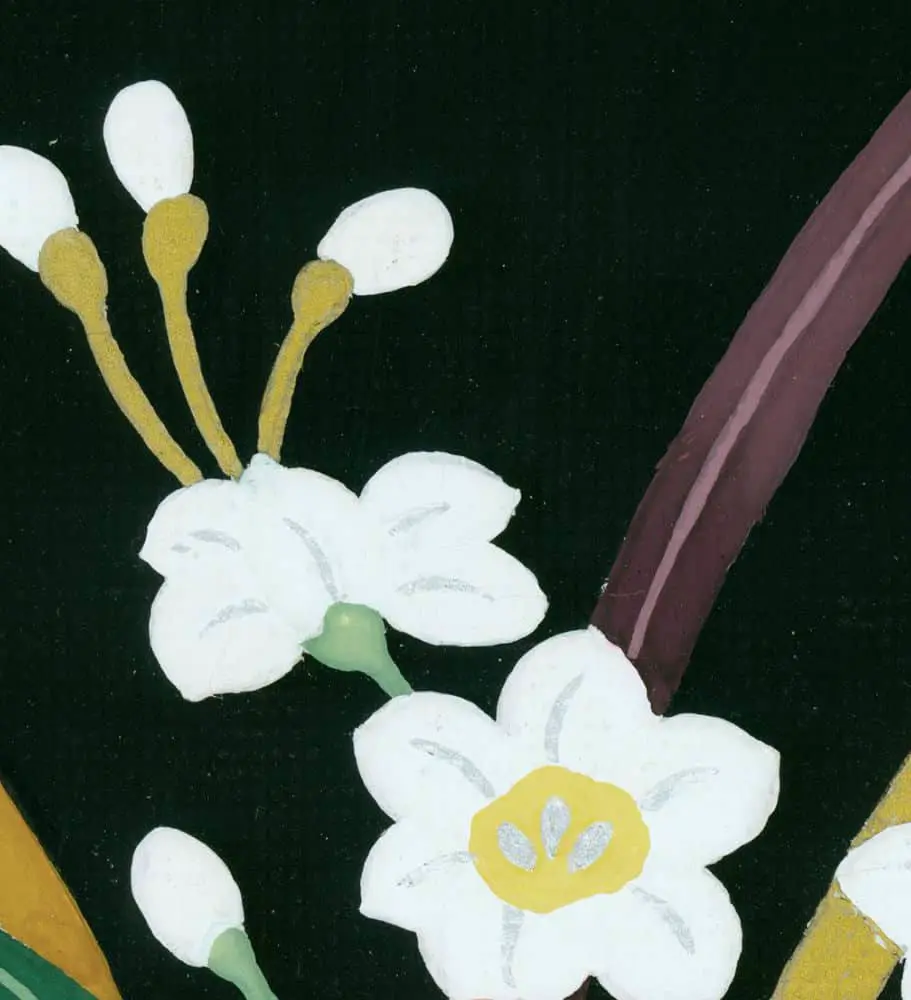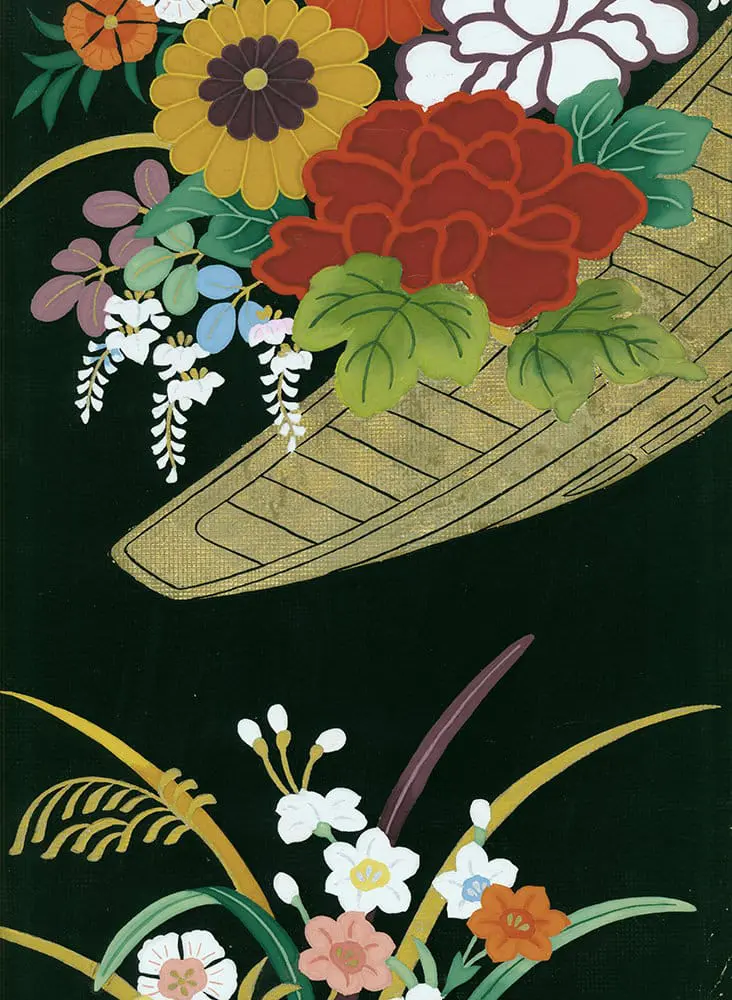 This original and distinctive artwork, crafted with paint on thick paper, originates from a Japanese artist in Kyoto's renowned Nishijin district. It served as the design inspiration for a woven obi, a wide traditional Japanese belt. The piece is in very good condition and measures 12 inches (30 cm) by 33 inches (84 cm).