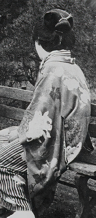Base fabric: figured silk (rinzu) with an asanoha (hemp leaf) and phoenix feather motif pattern