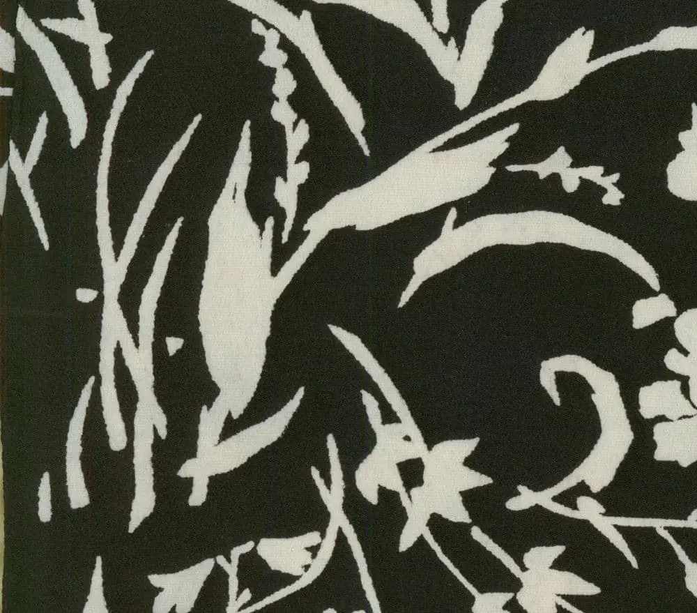 This design approach strongly evokes the Art Nouveau movement with its emphasis on sinuous, plant-based forms and the way the botanical elements interweave to create an almost abstract composition. However, the stark black and white palette and the bold graphic treatment also anticipate Art Deco sensibilities, reflecting the period's fascination with high contrast and simplified forms.