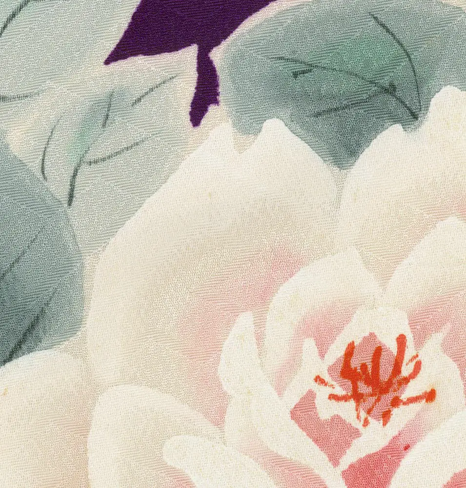 The artistic approach reflects the sophisticated cultural synthesis characteristic of Japan's bubble economy period, when there was both economic prosperity and renewed interest in luxury craftsmanship combined with international influences. The choice of roses—quintessentially Western flowers—as the primary motif represents a deliberate embrace of global aesthetic vocabulary while maintaining traditional Japanese techniques of hand-painting and resist-dyeing. The roses themselves carry symbolic weight, representing love, beauty, and the transient nature of life, themes that resonate deeply within Japanese aesthetic philosophy despite their foreign botanical origins.