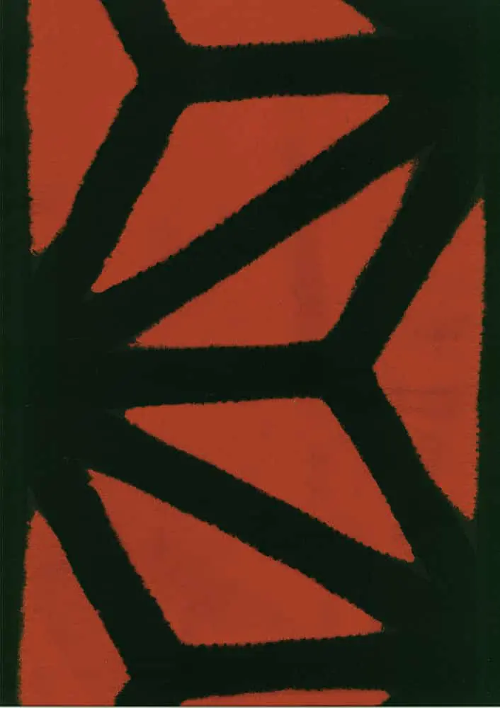 This haori features a striking and bold design based on the asanoha (hemp leaf) pattern, a traditional Japanese geometric motif created using the shibori dyeing technique. The pattern is rendered in a large scale, dominating the garment with its dynamic and repetitive forms. The color palette is a classic and powerful combination of black and a red, creating a strong visual impact. The asanoha pattern, with its sharp angles and interlocking shapes, is executed with remarkable precision, showcasing the skill involved in the shibori process. The shibori technique also creates a subtle texture and variation within the pattern, adding depth and visual interest.